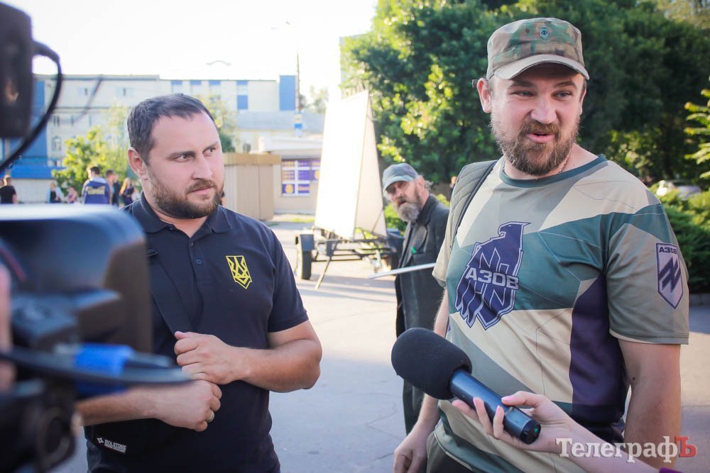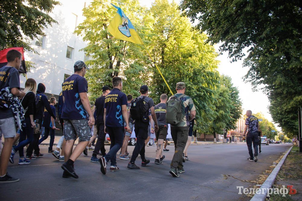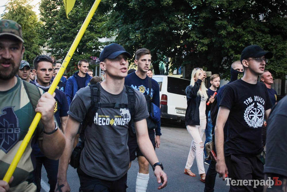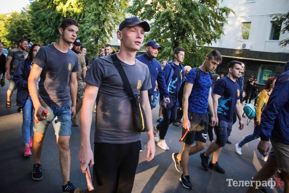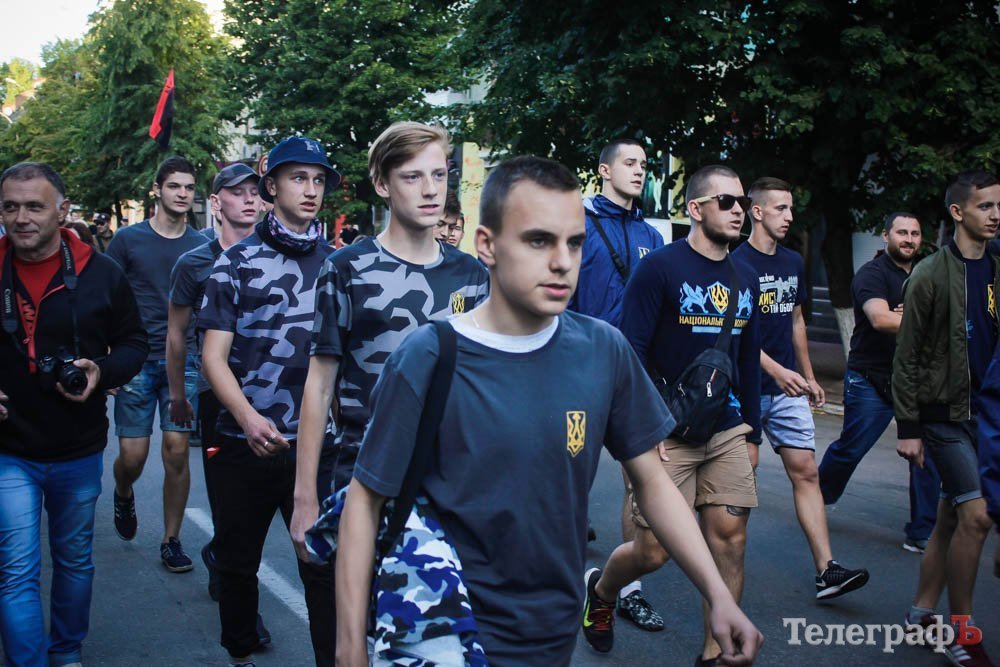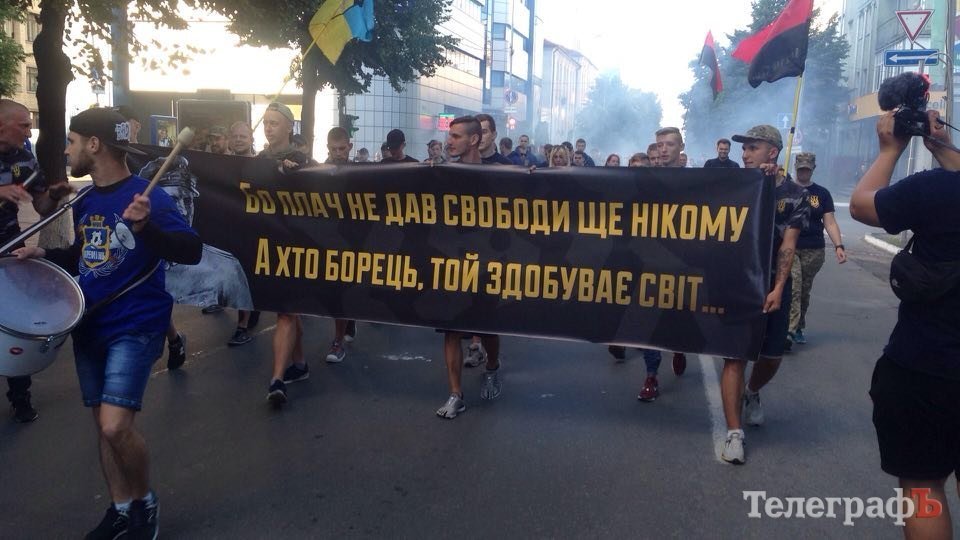 Хлопці несли плакат зі словами маршу українських націоналістів: