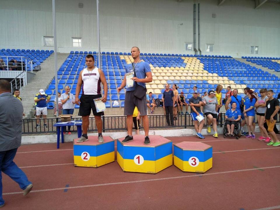 У штовханні ядра серед чоловіків у наших земляків 2 медалі: змагальний клас F-12 - золота у МСУМК Андрія Голівця, змагальний клас F-20 – срібна медаль у КМСУ Олександра Ярового.