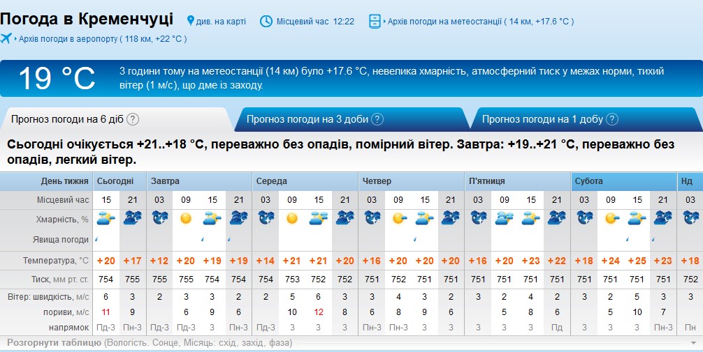 Rp5 попереджає кременчужан про можливі зливи ледь не щодень: і сьогодні, 2 липня, і завтра, 3 липня, і в четвер, 5 липня. і у суботу, 7 липня. У середу, 4 липня, здійметься сильний вітер з поривати до 12 м/с. Максимальна прогнозована температура +25°C, а мінімальна - +12°C.