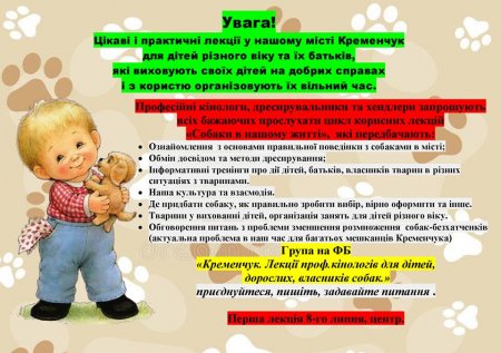 Профессиональные заводчики, дрессировщики, хендлеры и ответственные владельцы собак запускают в Кременчуге информационный проект для горожан - бесплатные лекции на разные «собачьи» темы.