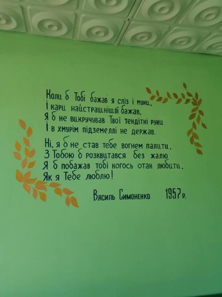 На іншій - слова Василя Симоненка «Коли б тобі бажав я сліз, і муки»
