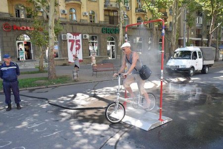 Такие освежающие рамки уже стали популярными в городах Украины. Они есть, например, в Киеве, Николаеве. Рамка распыляет воду — мельчайшие капли помогут людям охладиться и не получить солнечный удар.
