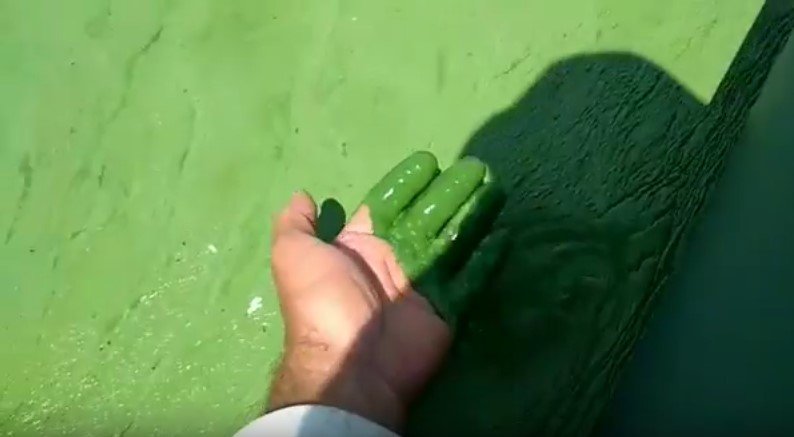 Днепр продолжает превращаться в болото. 10 июля «Телеграфу» прислали видео, на котором рыбак удивляется состоянию реки. Мужчина даже рискнул сунуть в эту зелёную жижу руку! Рука осталась на месте, но зрелище не для слабонервных: