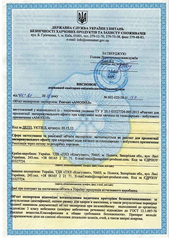 На сегодня мы нашли данные, что «Амопол» применяется в водоподготовке в Днипре, Запорожье, Черкассах, Житомире.
