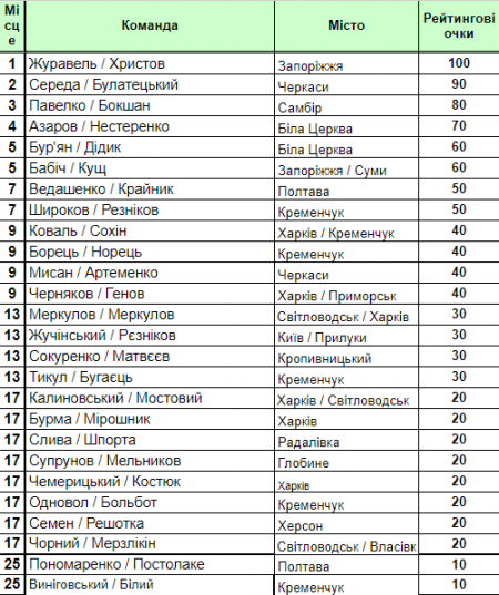В 9 турі "Energy open" місця розподілилися наступним чином:
