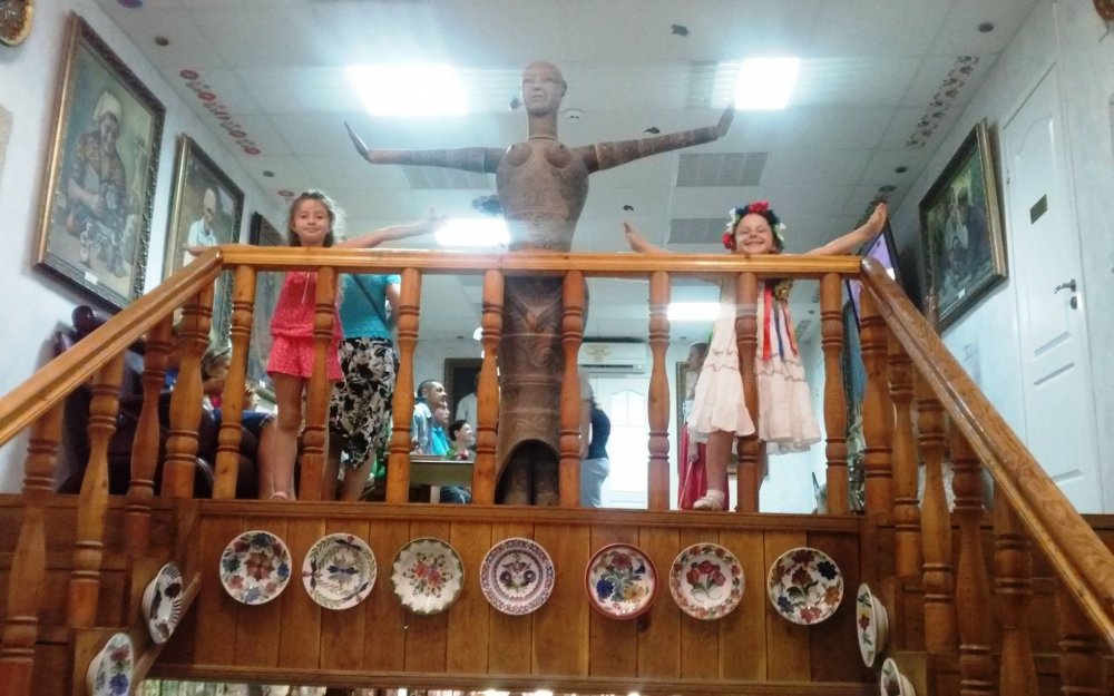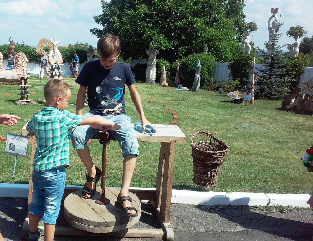 Потім гойдалися на старовинних гойдалках, фотографувалися на фоні шедеврів гончарства та захоплююче-неповторних краєвидів Слобожанщини...