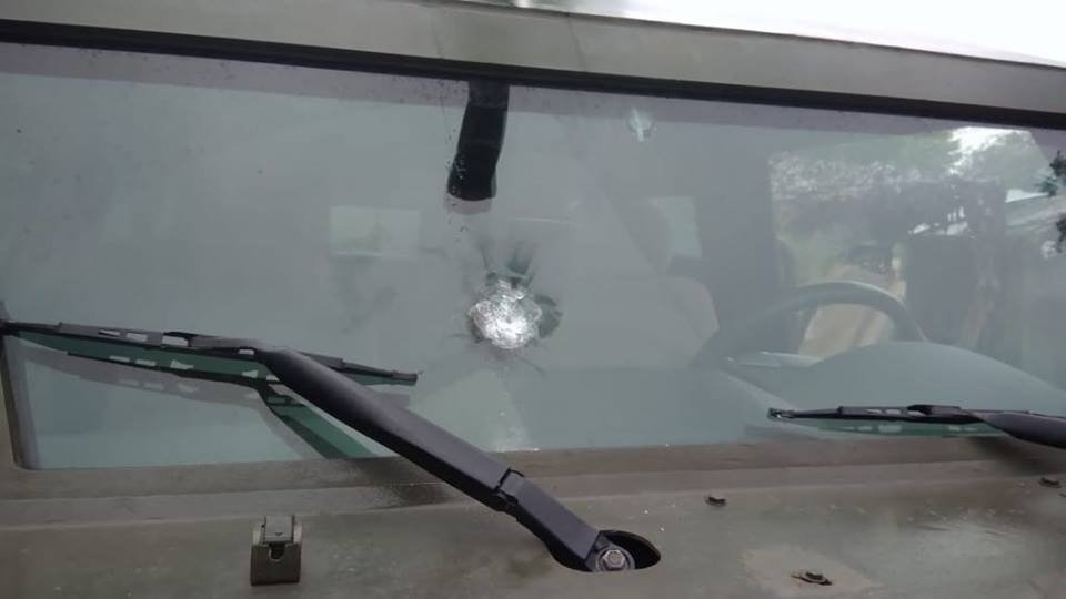 У результаті вогню, попередньо з кулемета, одна з куль влучила в лобове скло бронемашини «Кугуар», якою рухалися прикордонники.