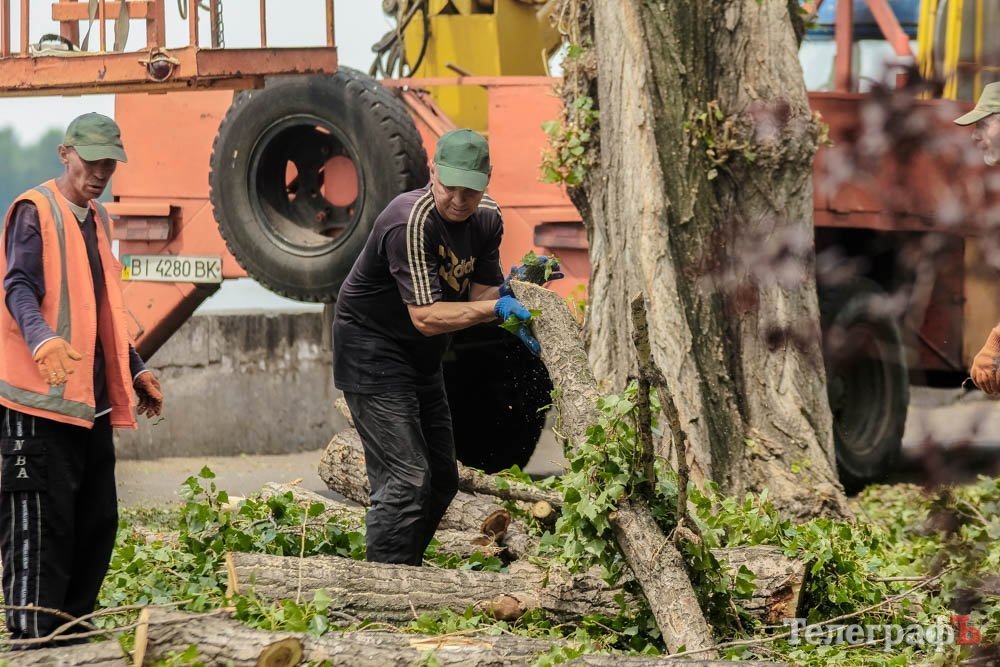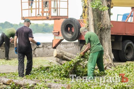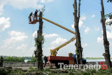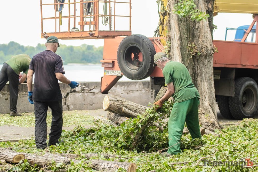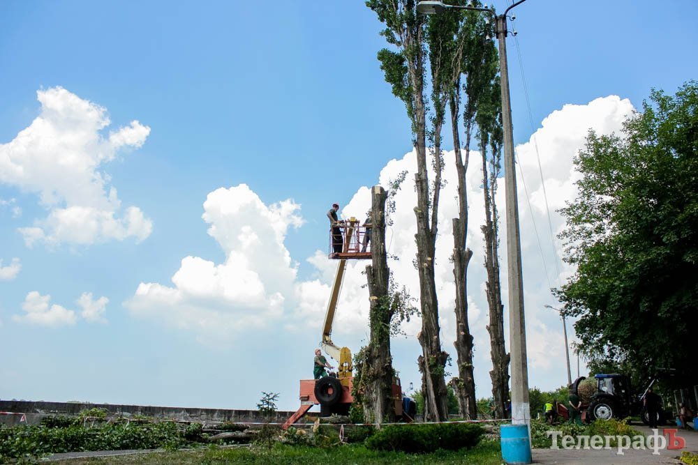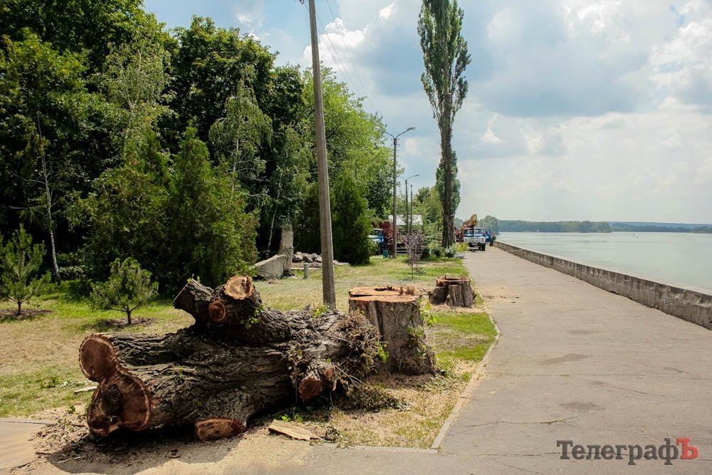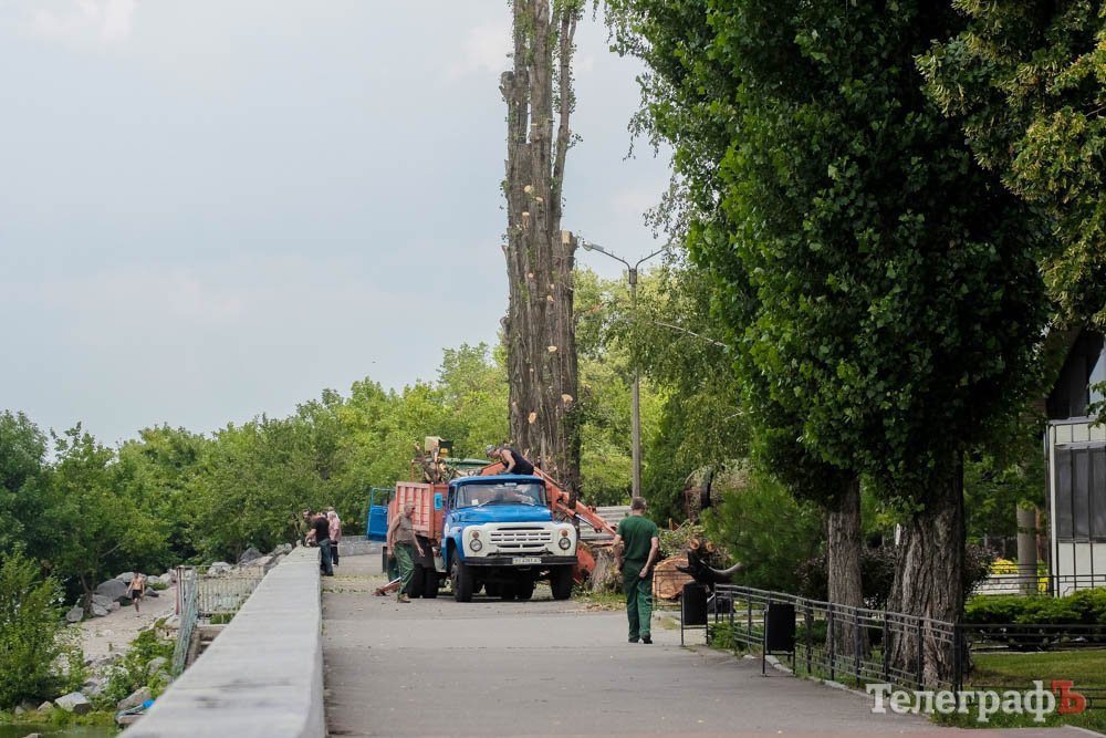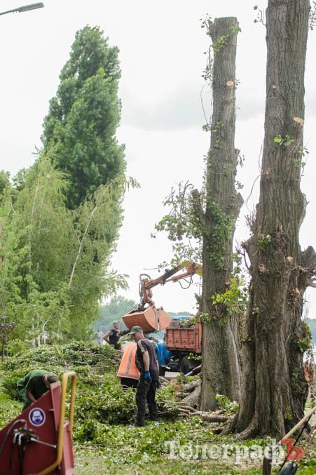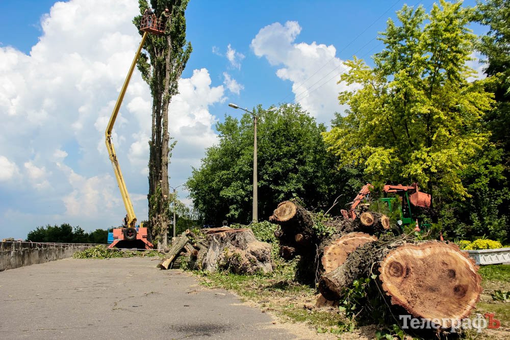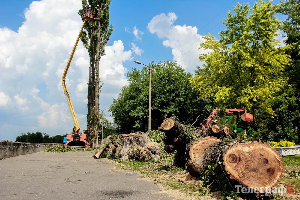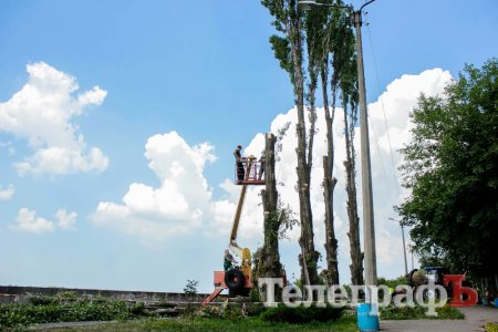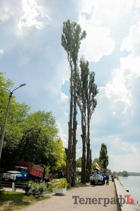 У Придніпровському парку вже майже тиждень триває винищення останніх величезних тополь, що прикрашали кременчуцьку набережну. Валити дерева почали минулого четверга, 19-го липня. Працювали ще й 20-го. На вихідні зробили перерву, і поновили роботи у понеділок, 23-го. А 24-го до парку пригнали чимало техніки, вирубка йде повним ходом. Те, що відбувається, вже більше схоже не на вирубку дерев, а на заготівлю дров чи сировини для них.