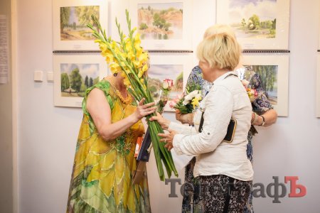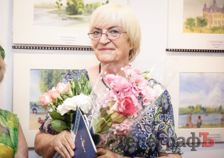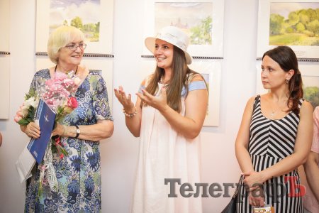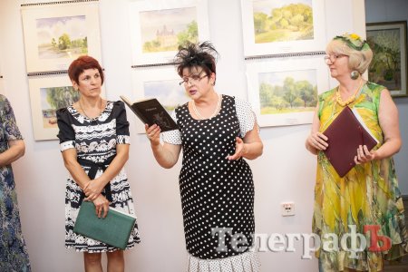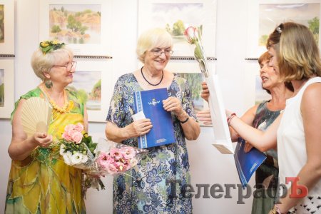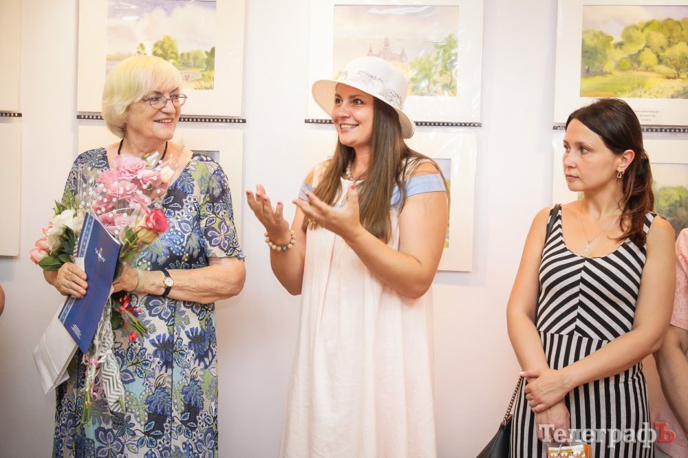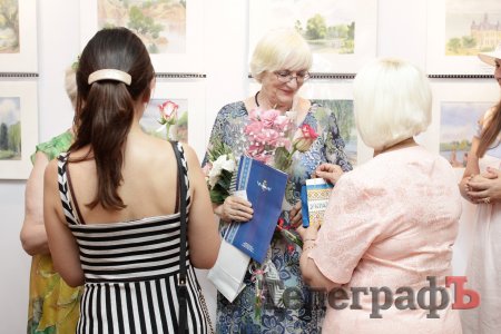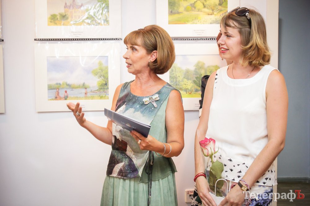 Інша учасниця виставки - Ютта Цикон-Форверк - вперше виставлялася у Кременчуці у 2013 році і ось кременчужани знову можуть насолодитися її роботами, виконаними аквареллю по сирому. Ютта дуже пристойно говорить російською, тож, відкриваючи виставку, обійшлася без перекладача.