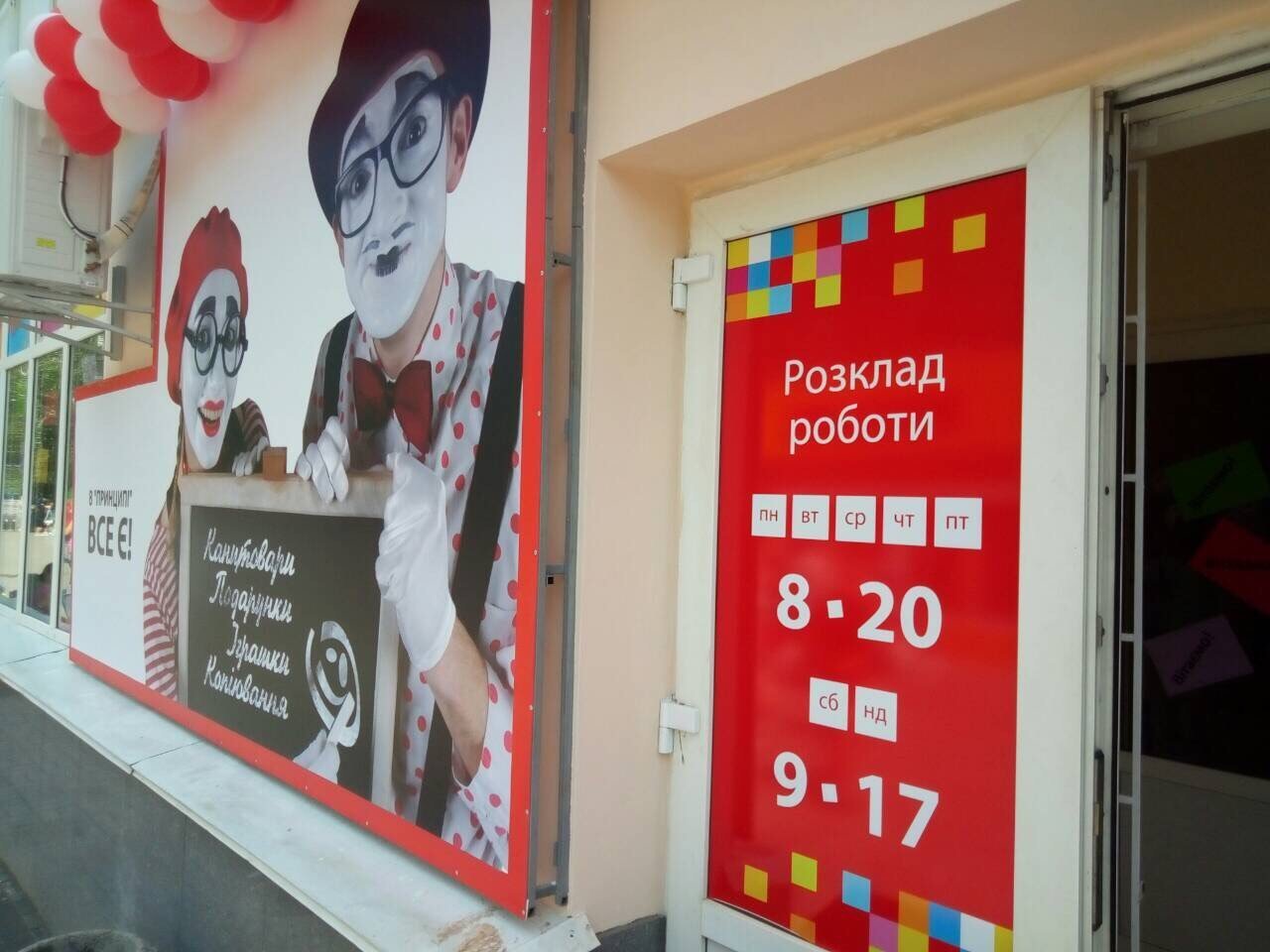 Магазин канцтоваров и подарков «Принцип» теперь находится не в конце дома, что на проспекте Леси Украинки, 39, а переехал на 70 метров ближе к началу этого же дома. Теперь он расположен тоже на пр. Леси Украинки, 39, но в помещении, что почти напротив остановки общественного транспорта «ул. Героев Украины» (раньше здесь был магазин «Книголенд»).