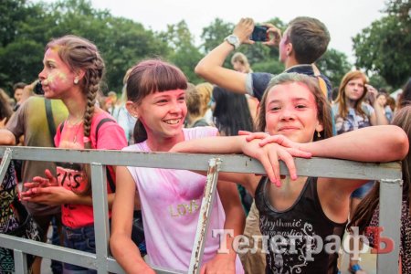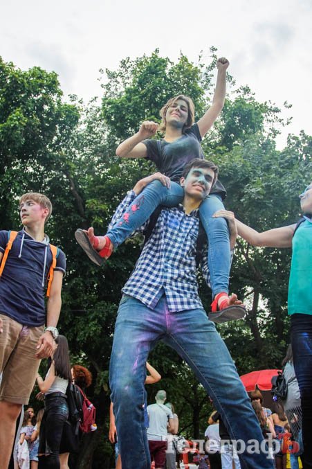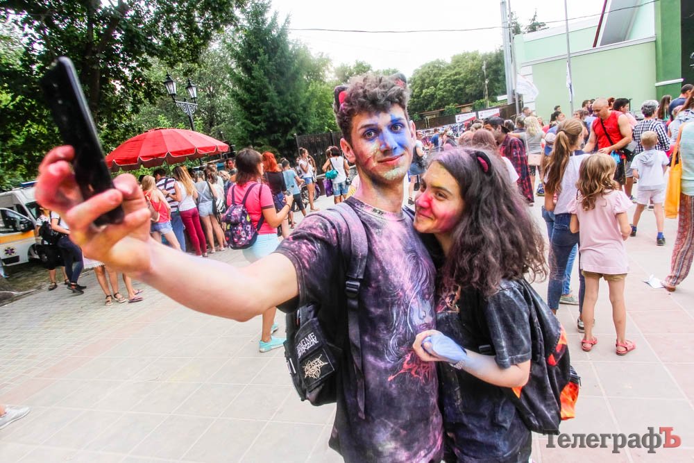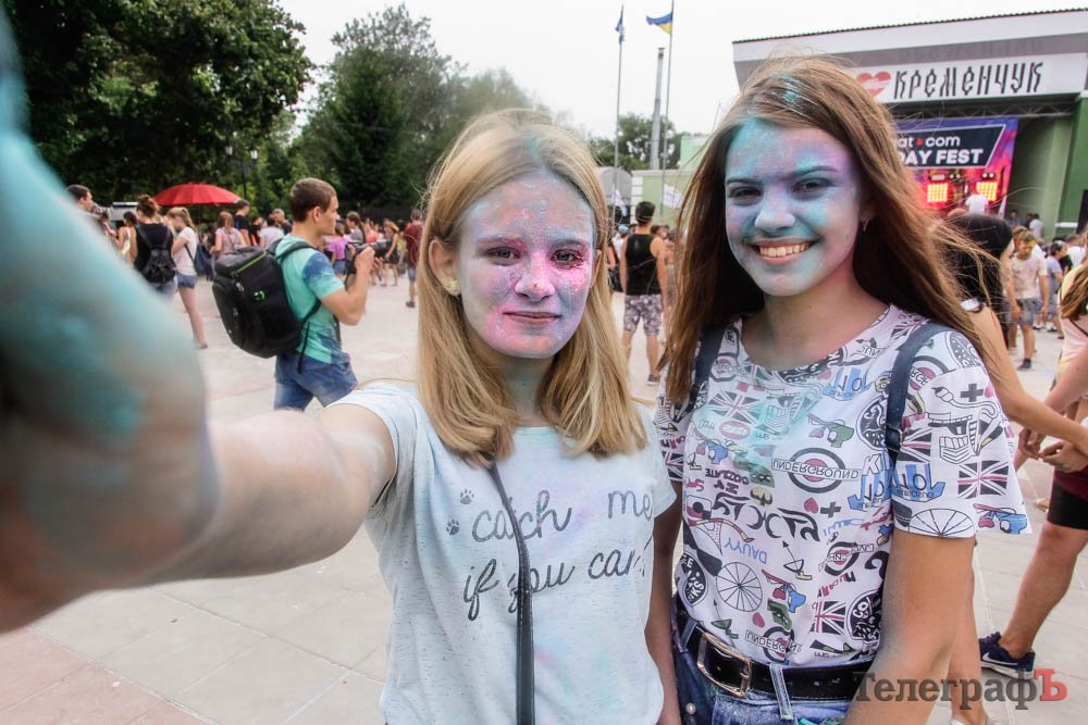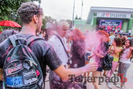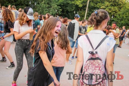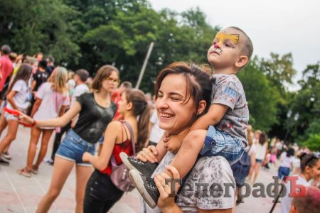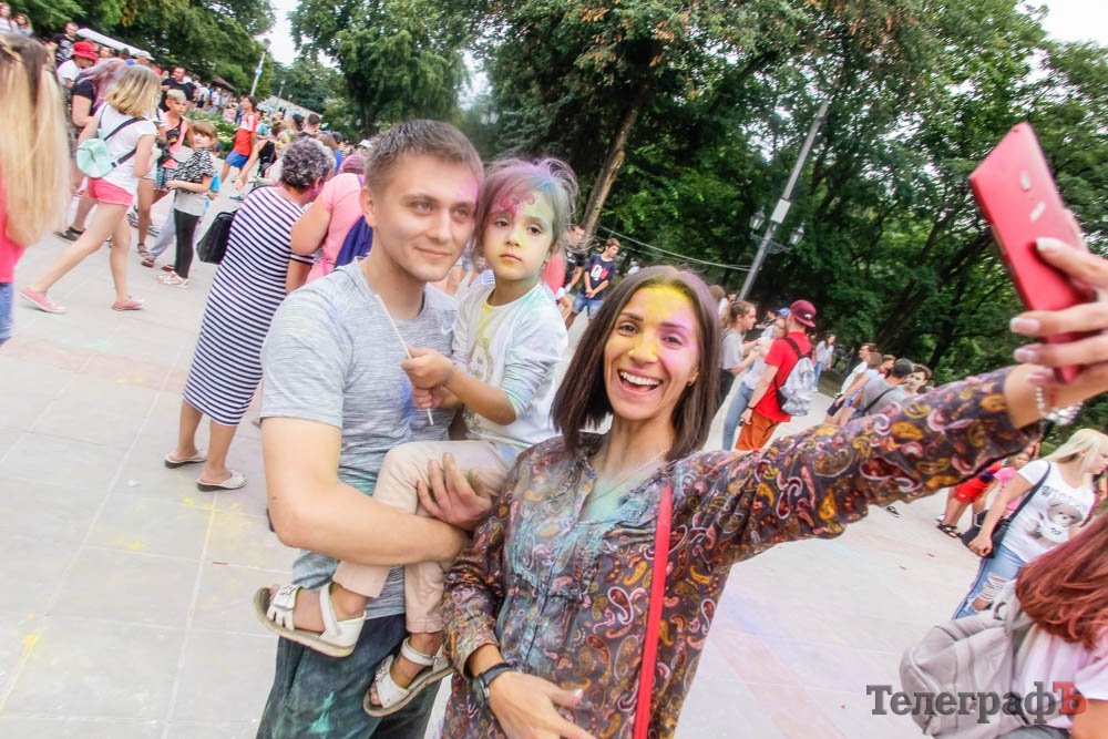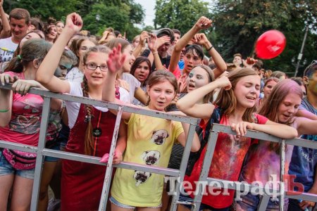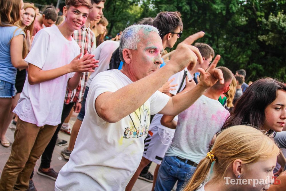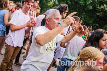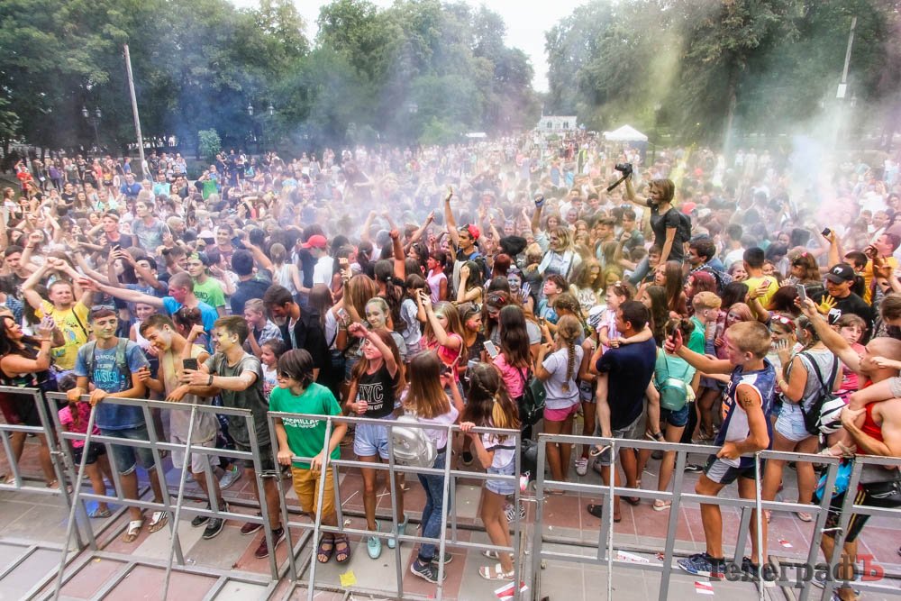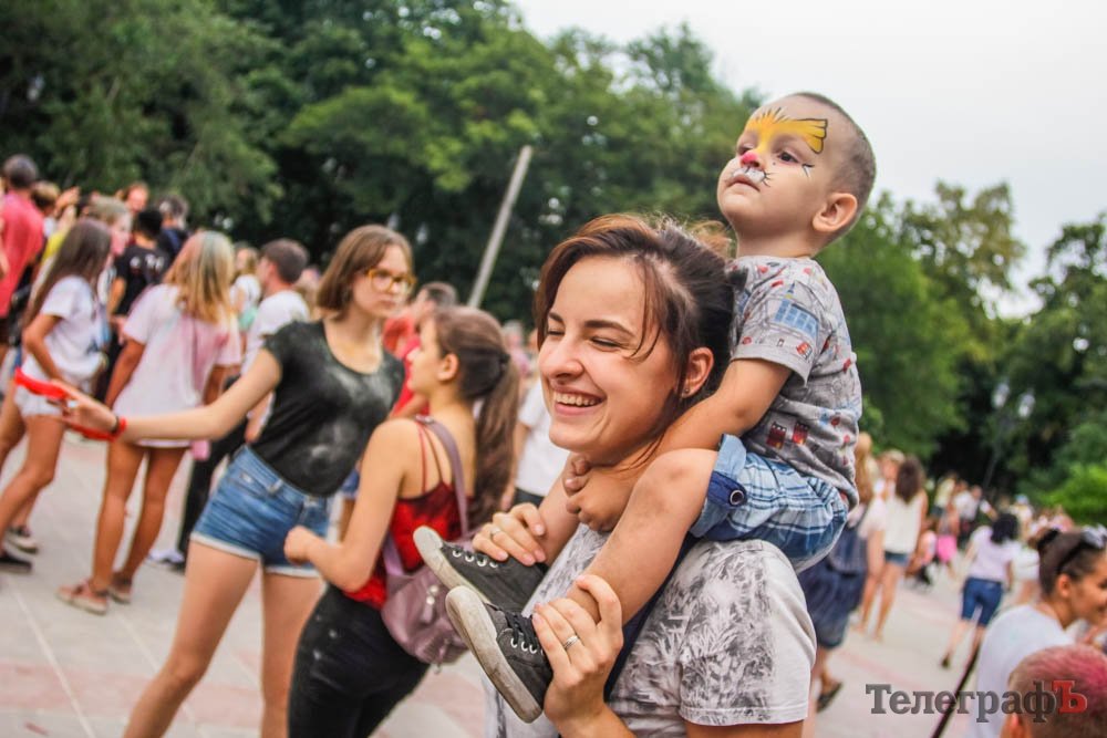 Під вечір кременчужани за допомогою фарб перетворилися на різнокольорових чоловічків. А після кидання фарбами глядачів очікували дискотека та виступ блогера Руслана Кузнецова.