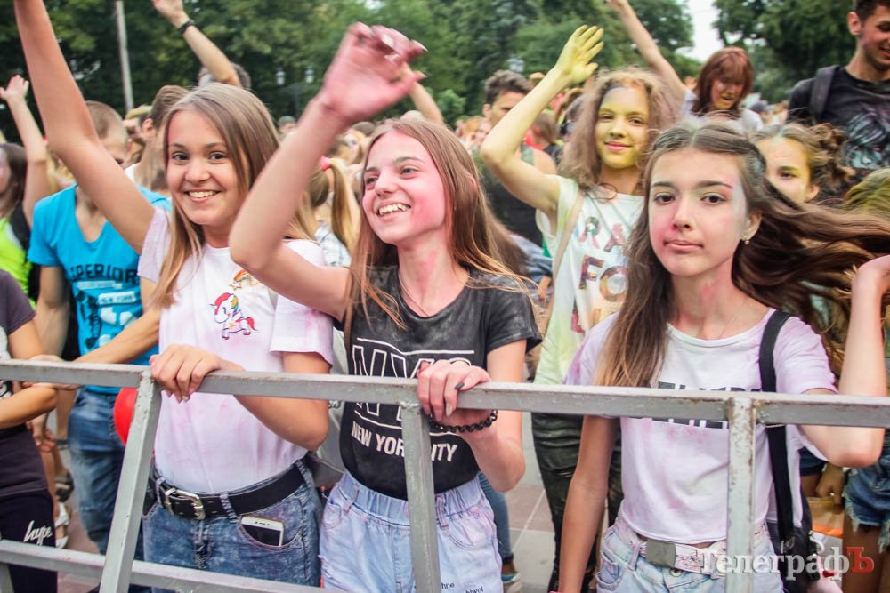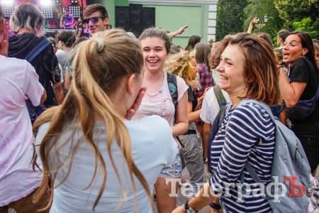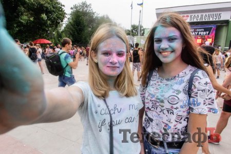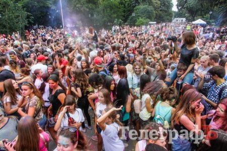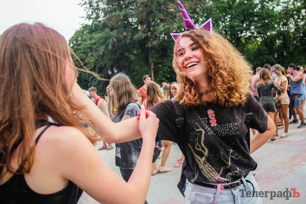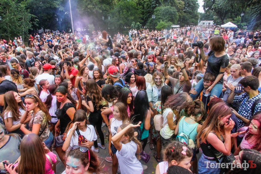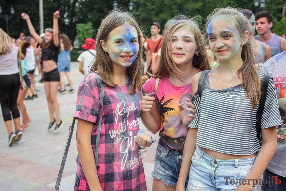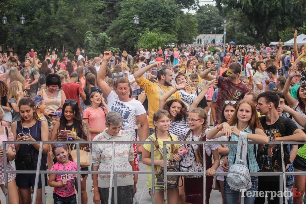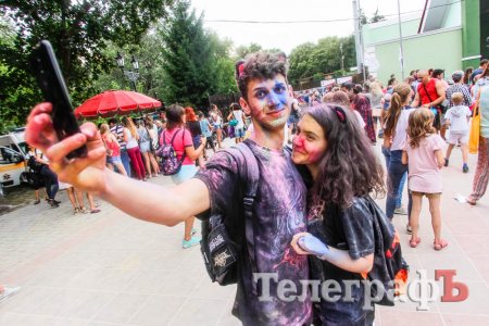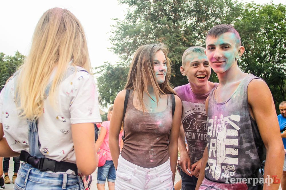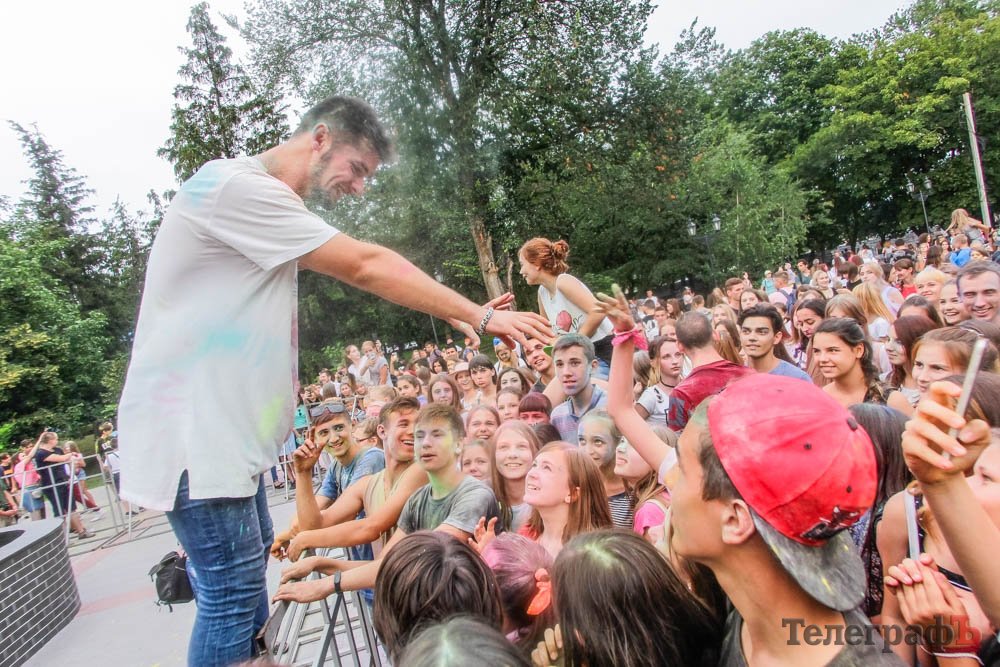 Під вечір кременчужани за допомогою фарб перетворилися на різнокольорових чоловічків. А після кидання фарбами глядачів очікували дискотека та виступ блогера Руслана Кузнецова.