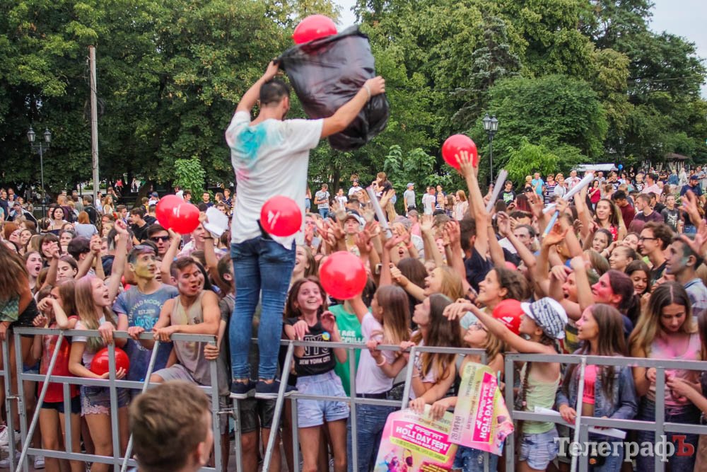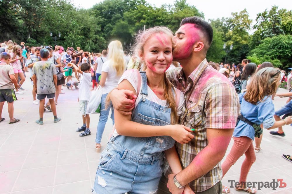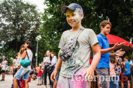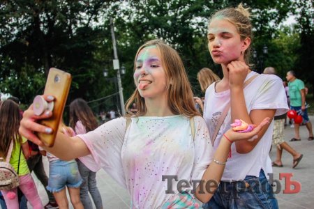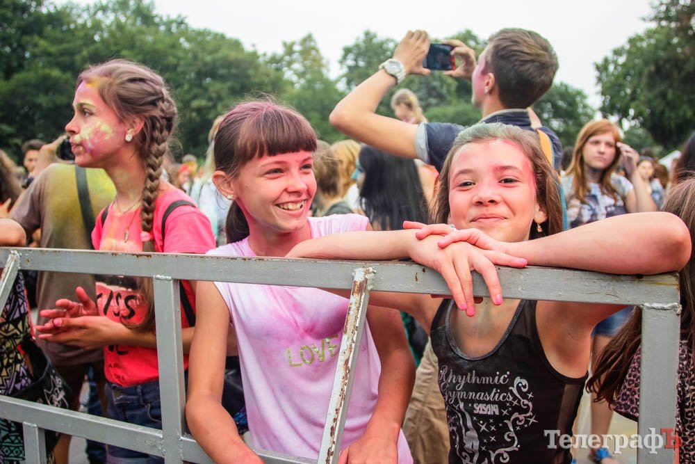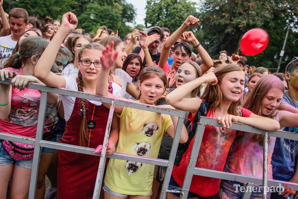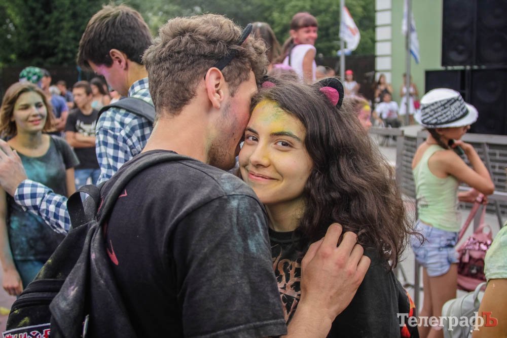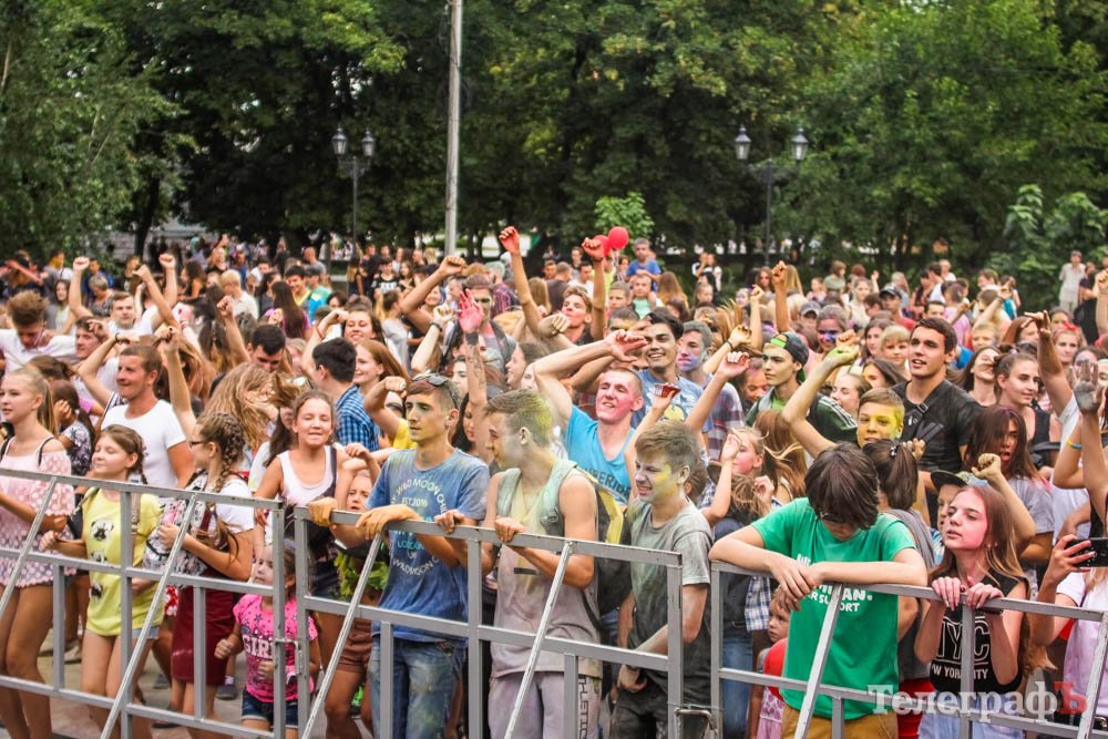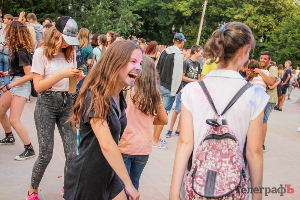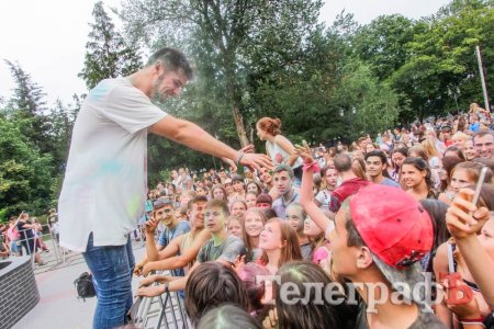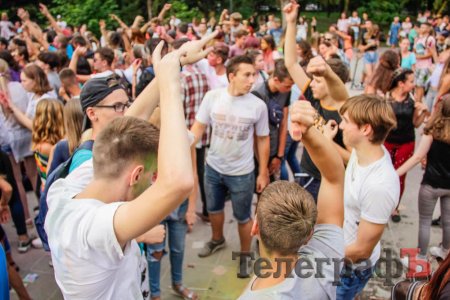 Під вечір кременчужани за допомогою фарб перетворилися на різнокольорових чоловічків. А після кидання фарбами глядачів очікували дискотека та виступ блогера Руслана Кузнецова.