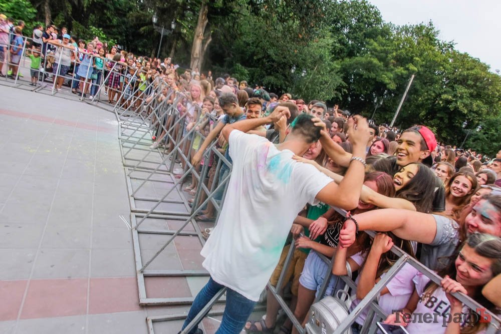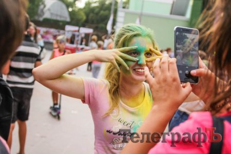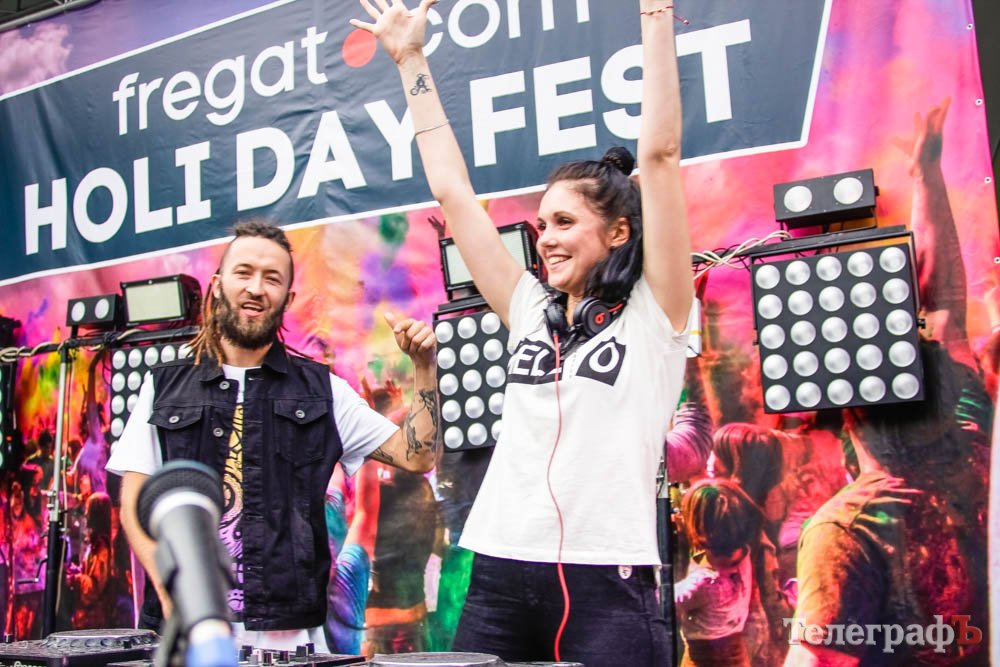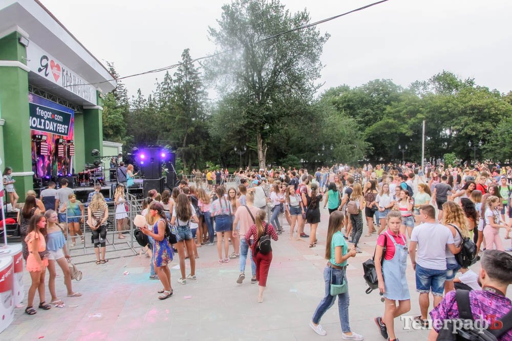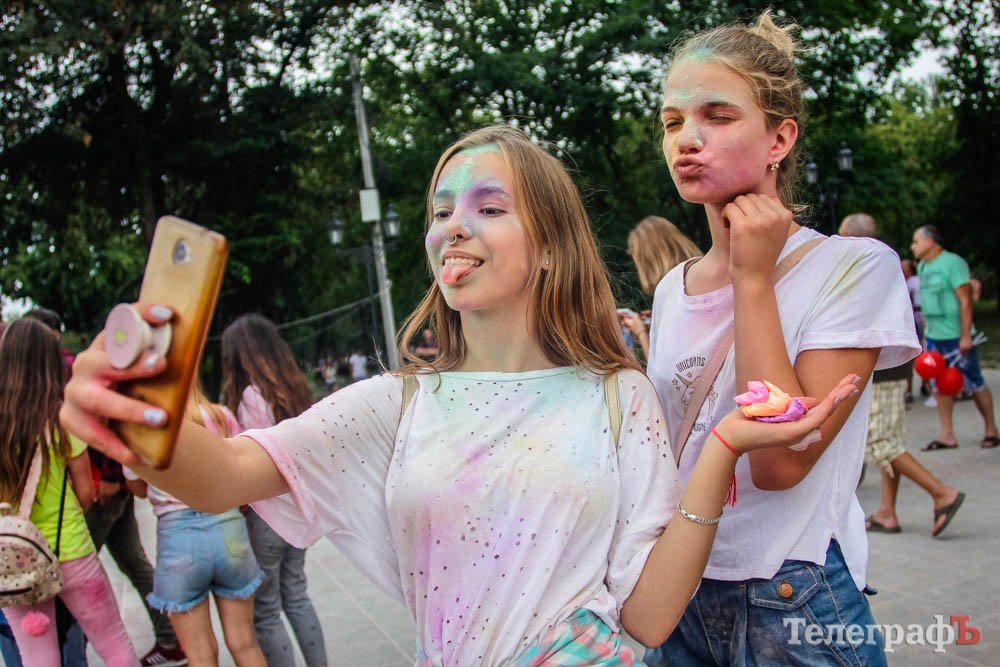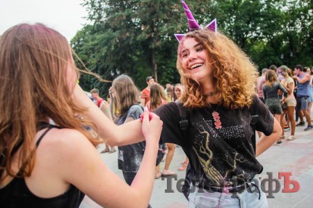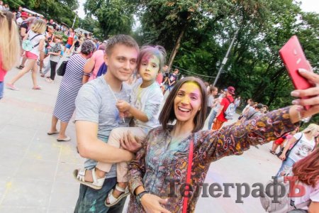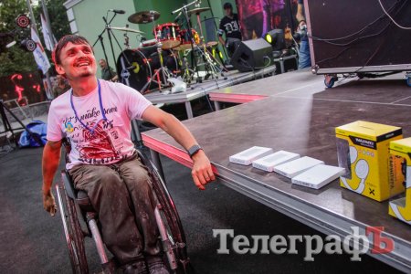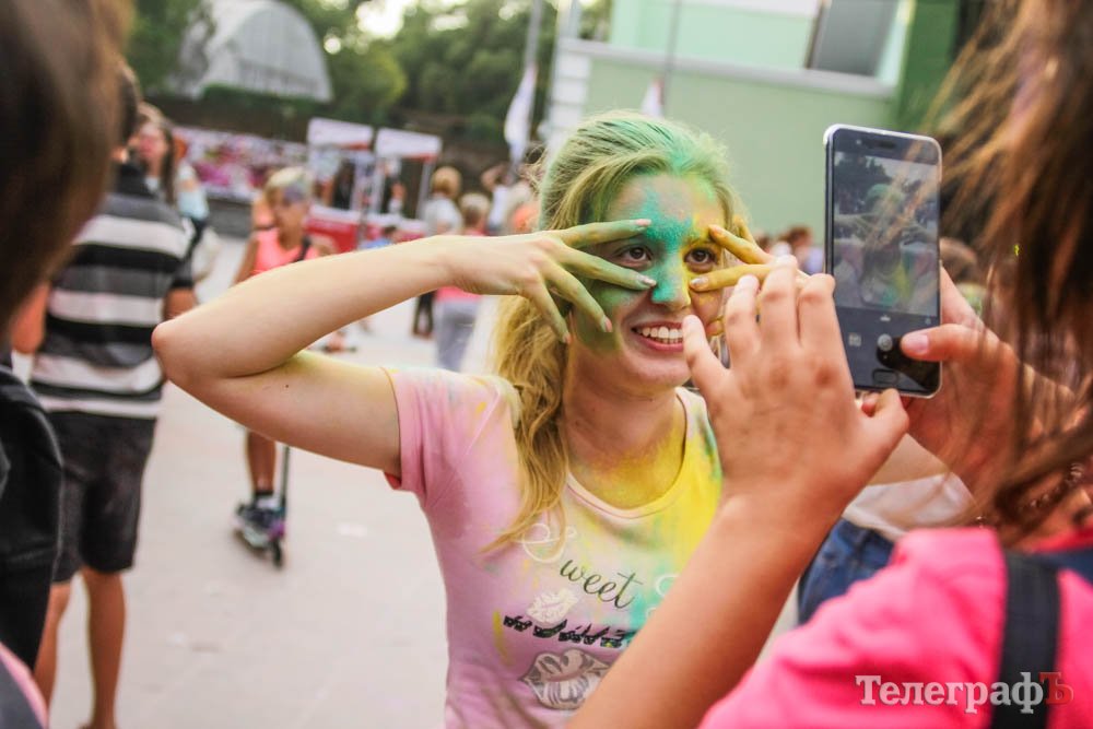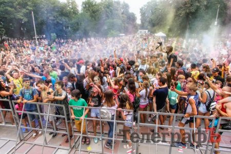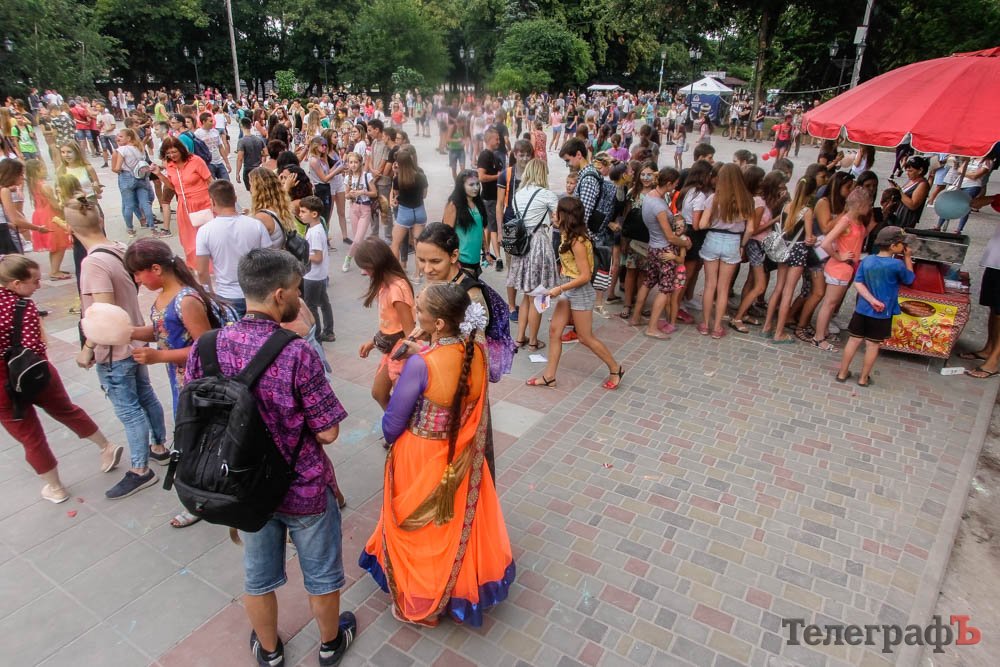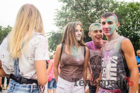 Під вечір кременчужани за допомогою фарб перетворилися на різнокольорових чоловічків. А після кидання фарбами глядачів очікували дискотека та виступ блогера Руслана Кузнецова.