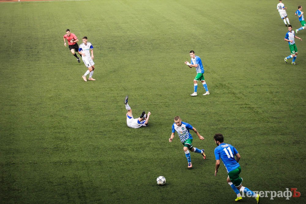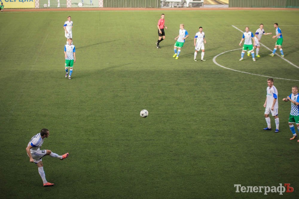 Футболісти «Кременя» віддячили своїй вболівальникам не лише перемогою, а й хорошою грою та забитими голами на будь-який смак. Вже на перших хвилинах матчу херсонці намагаючись зупинити Степанчука підставили йому підніжку – арбітр поставив штрафний. Сергій Степанчук віддав пас на Дениса Бєлоусова, який потужний ударом зняв павутину з правої дев’ятки воріт – 1:0.