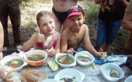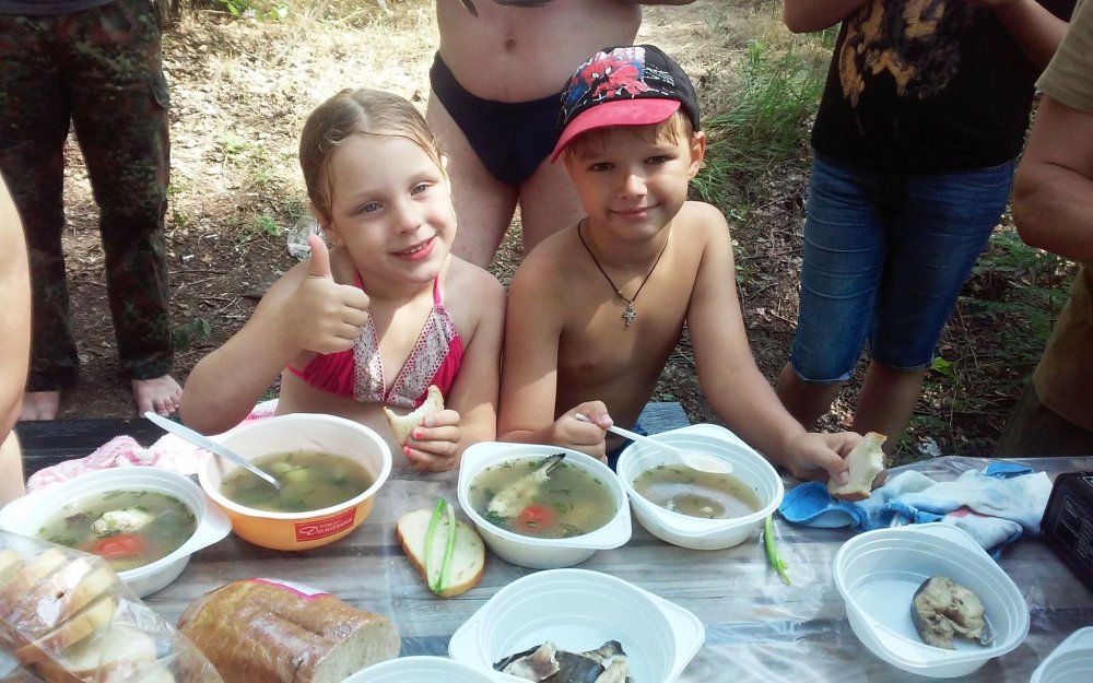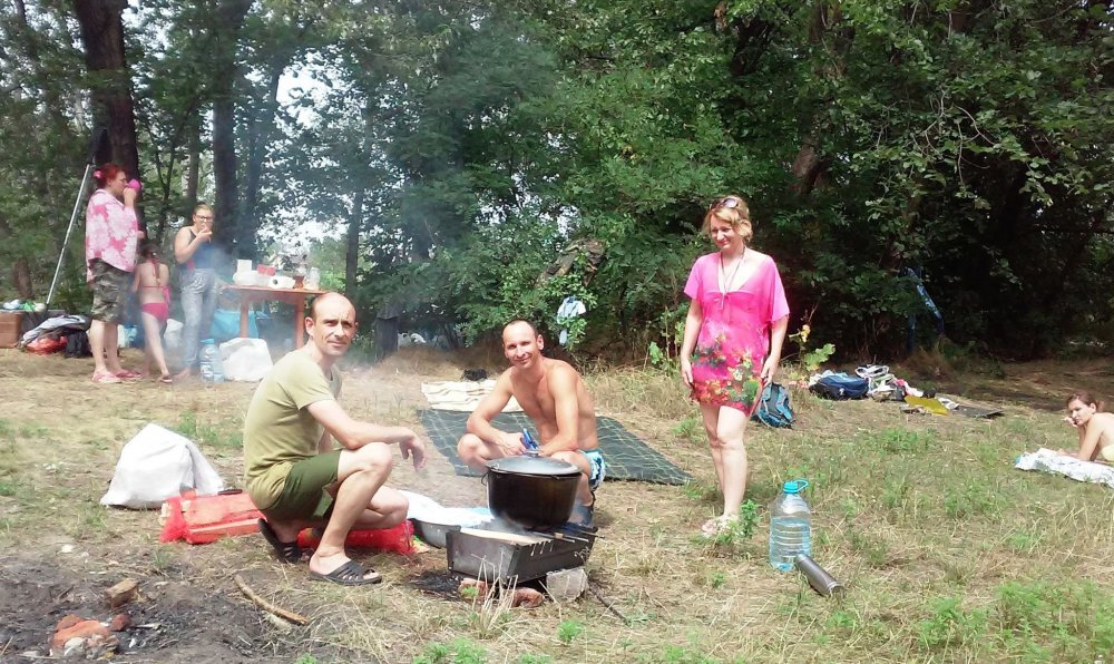 Кременчуцькі АТОвці разом з дружинами та дітьми вчилися плавати на байдарках, а вечір завершили короваєм