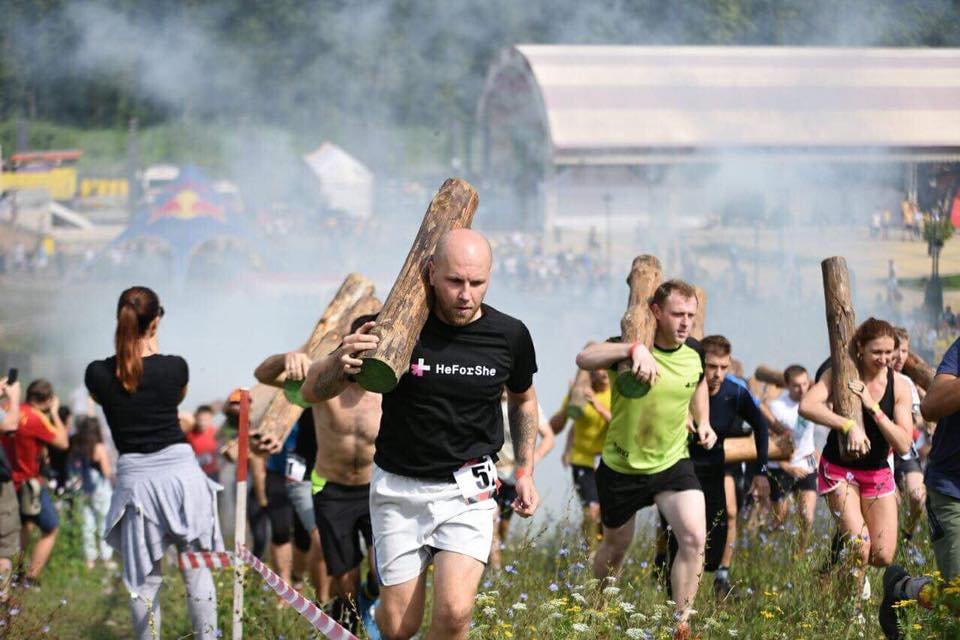 Дівчата і хлопці стартували з забігу в гору з дерев'яною колодою в руках, далі пробігли по тунельній балці, і пройшли випробування на встановлених перешкодах.