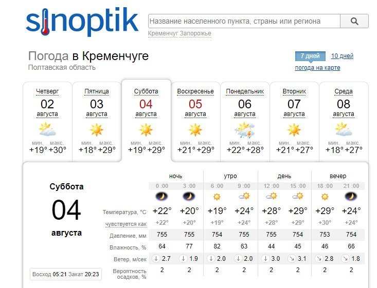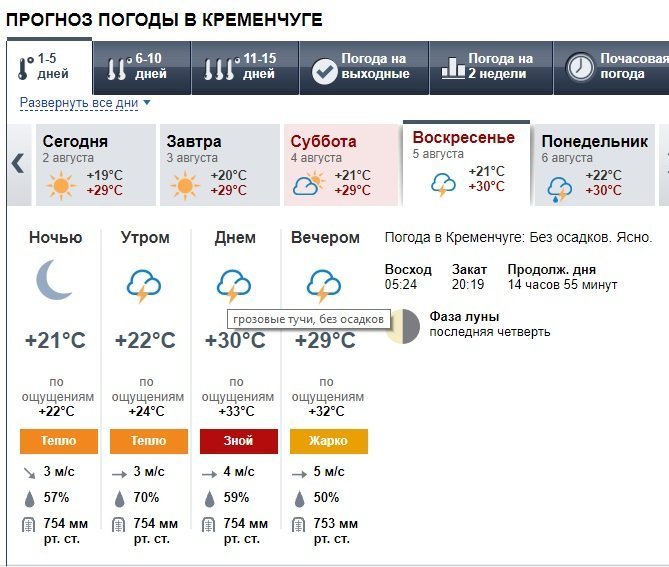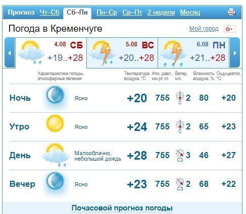 А от gismeteo прогнозує у суботу для кремечужан ввечері невеликий дощик, а в неділю – грозу.