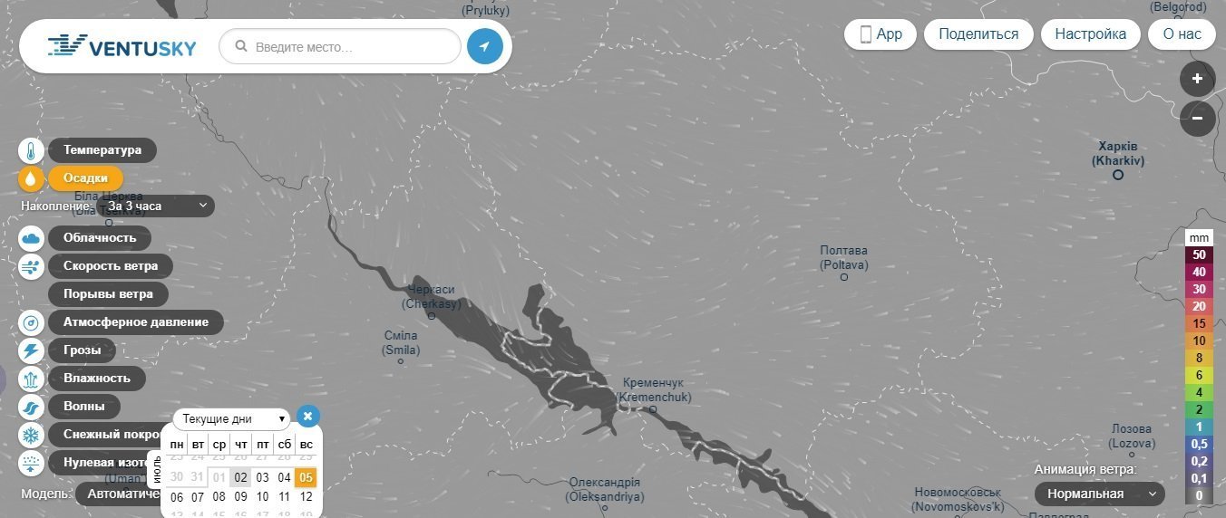 Ventusky передає сонячну погоду без опадів, навіть дощу на Полтавщині не буде.