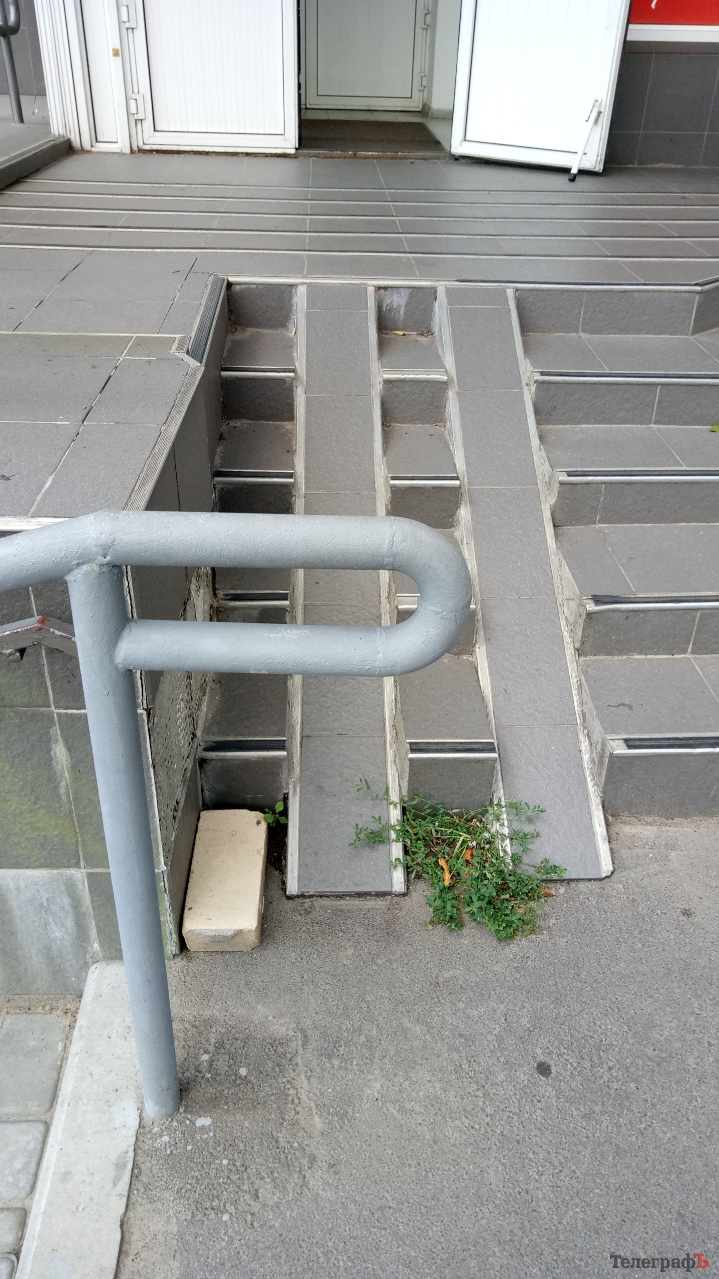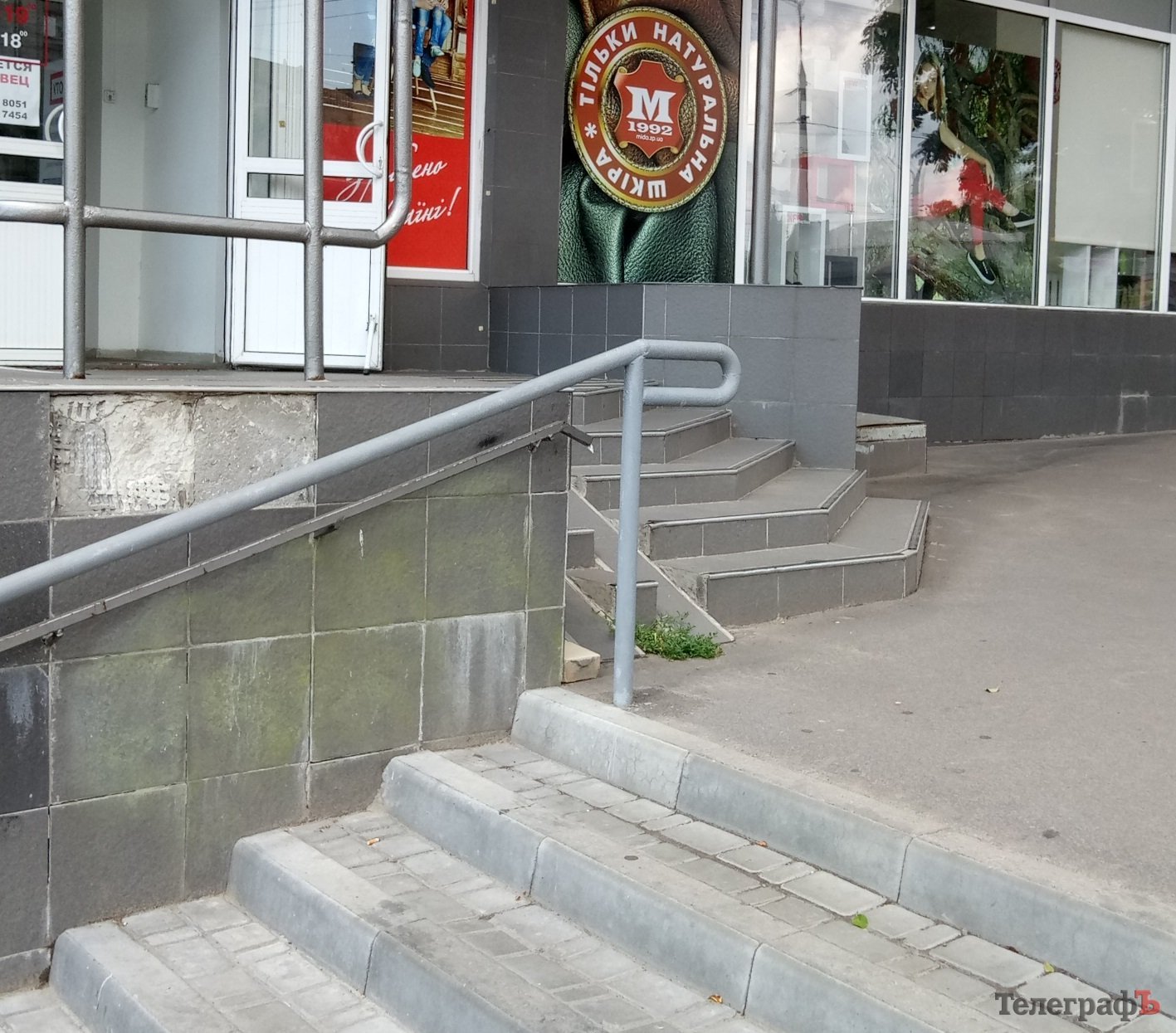 В Кременчуге есть суперПандус. Если им воспользоваться, то даже человек без инвалидности может её получить. Он находится у магазина на пешеходной дорожке по просп. Свободы между остановкой «Водоканал» и ул. Европейской. К сожалению, это чудо конвергентности двух инженерных мыслей ускользнуло от наших глаз, но мы не можем им не поделиться даже сейчас.