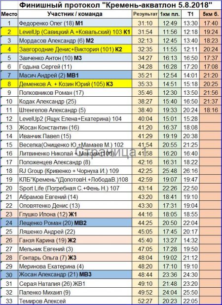 Кременчук вчетверте приймав найсильніших спортсменів на Відкритому чемпіонаті Полтавської області "Кремінь-акватлон". 5 серпня в парку "Воїнів Інтернаціоналістів" 43 спортсмени з Кременчука, Києва, Броварів, Дніпра та Запоріжжя взяли участь у змаганнях.