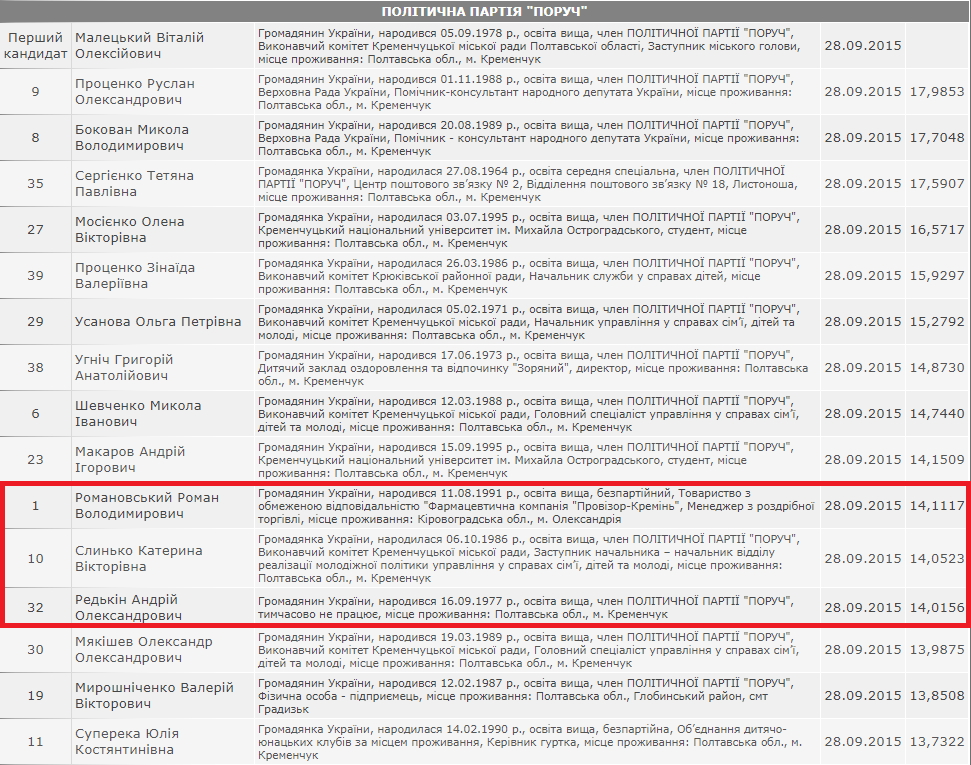 Згідно з даними на сайті Центральної виборчої комісії наступними в списку Роман Романовський, Катерина Слинько та Андрій Редькін.