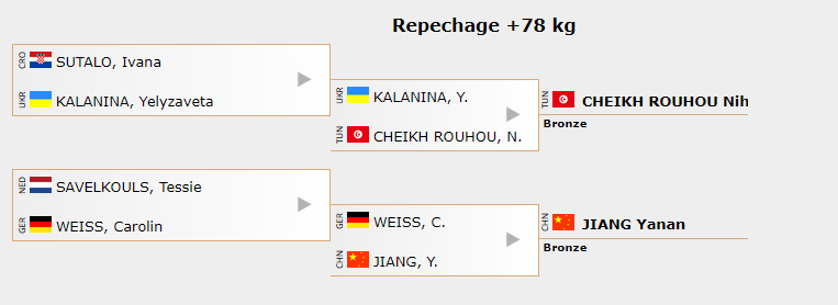 У сутичці за третє місце у категорії понад 78 кг Єлизавета Каланіна поступилася Нігель Шейх Руху із Тунісу, яка є семиразовою чемпіонкою Африки (2010, 2011, 2013 – 2016, 2018).