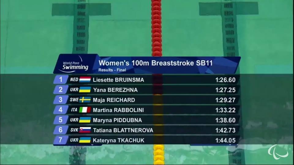Також Яна завоювала золото на дистанції 50 метрів з результатом - 39.82.