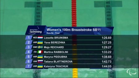 З 13 по 19 серпня у Дубліні (Ірландія) відбувається чемпіонат Європи з плавання серед спортсменів з обмеженими можливостями. Кременчужанка Яна Бережна, яка представляє секцію плавання Харківського обласного центру «Інваспорт» змагалася на дистанції 100 метрів. Під керівництвом тренера Воронцова О.В. дівчина завоювала «срібну» медаль фінішував з результатом - 1:27.25, поступившись спортсменці з Нідерландів.