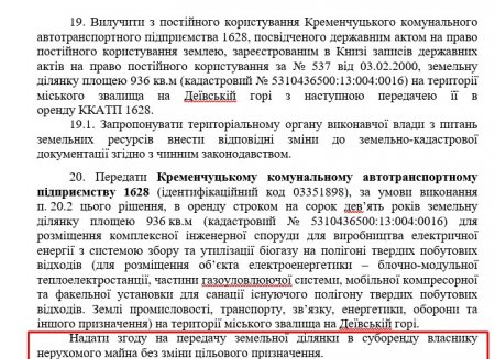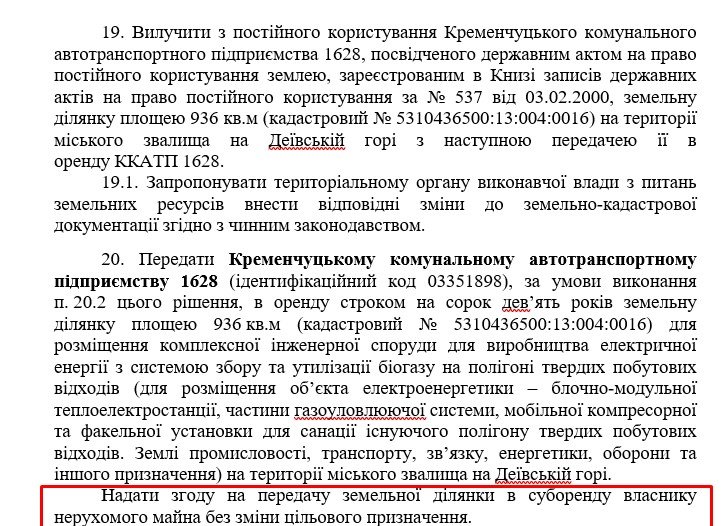 Вот итоговый текст решения об аренде земли, размещенный на сайте Кременчугского горсовета.