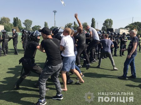 Правоохоронці з собаками, спецпідрозділ поліції та нацгвардійці усували порушників на стадіоні, які намагалися "захопити" територію