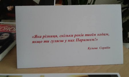 З її допомогою кременчужани змогли зануритися в атмосферу його творчості: послухати в запису пісні у виконанні Скрябіна, подивитись інтерв'ю з Андрієм, згадати його неперевершену манеру спілкування, гумор. Було багато відео, музики, аудіо-запис книги Скрябіна «Я, «Побєда» і Берлін» у неповторному виконанні автора. Також кременчужани могли почитати його книги та потримати у руках квитки з останнього концерту у Кременчуці...