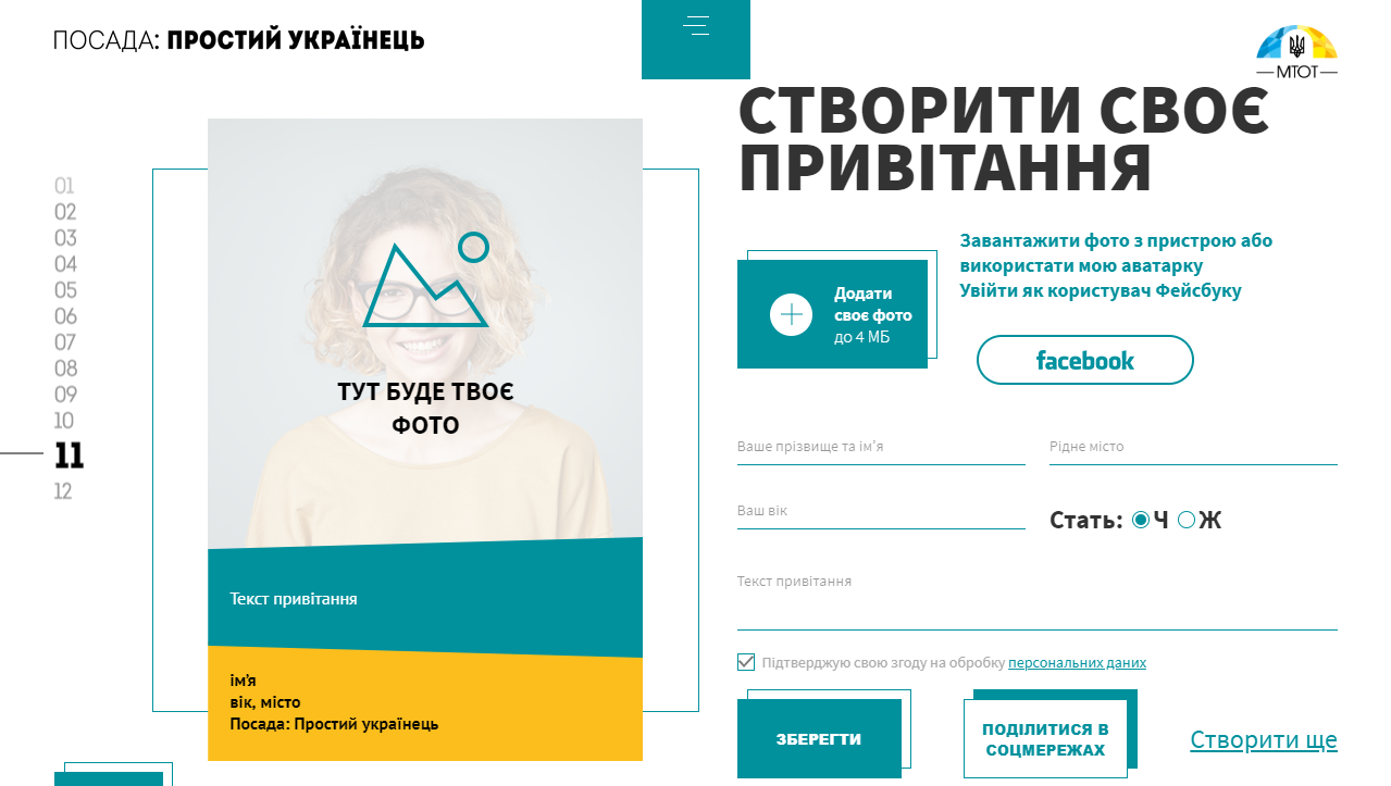 Щоб долучитися до акції необхідно зайти на сайт МТОТ та заповнити своєрідну анкету-листівку.
