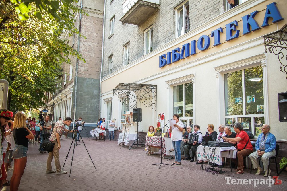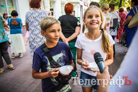 23 серпня біля приміщення відділу абонементу комунального закладу культури «Кременчуцька міська ЦБС для дорослих» (вул. Соборна, 11) бібліотекарі пригощали перехожих галушками.