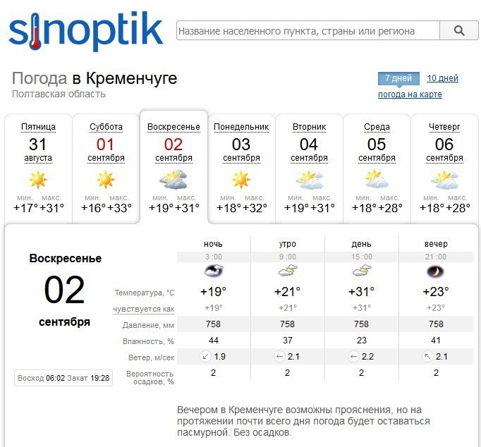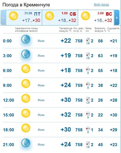 Sinoptik прогнозує кременчужанам у суботу, 1 вересня, спеку до +33°C, а у неділю, 2 вересня, хмарну погоду та +31°C.