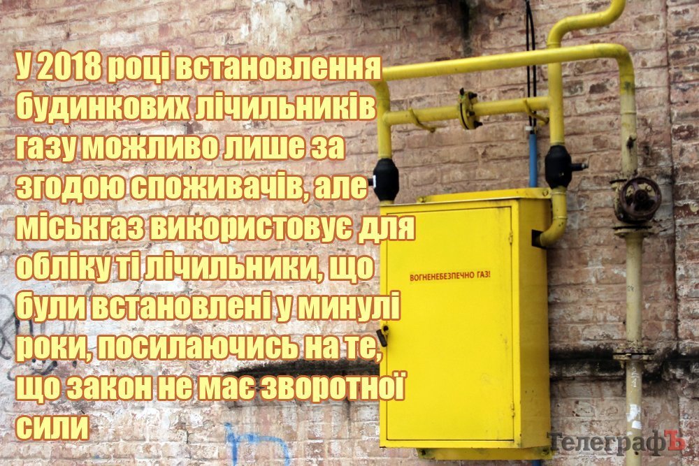В этом году, как известно, закон «Об обеспечении коммерческого учета природного газа» (в новой редакции) предусмотрел установку только индивидуальных приборов учета. Однако, как мы писали ранее, «Кременчуггаз» продолжает учитывать показания домовых приборов учета. Руководство горгаза поясняет это тем, что закон не имеет обратной силы, а домовые счетчики были установлены еще до внесения изменений в закон о коммерческом учете. Глава правления ПАО «Кременчуггаз» Богдан Оксененко подтвердил, что для абонентов с домовым учетом ничего не изменится в связи с введением новых норм потребления: им как считали, так и будут считать оплату по домовому прибору.
