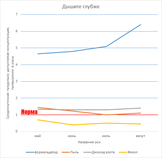 «Веселее» всего, традиционно, в августе. В это время загрязнителей в воздухе больше всего – из-за неблагоприятных для рассеивания веществ условий.