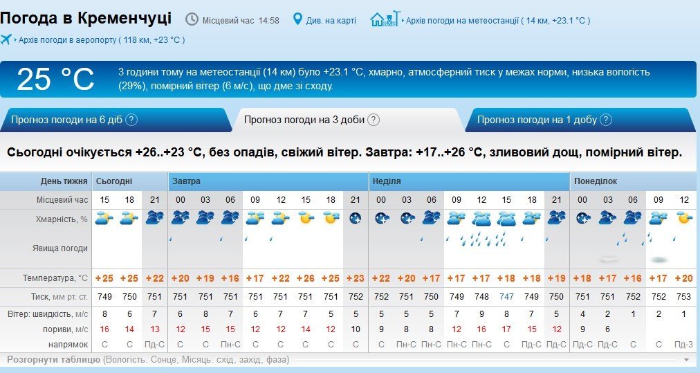 Прогноз погоди на вихідні не радує – синоптики пророчать Кременчуку дощі, грози і шквальний вітер.