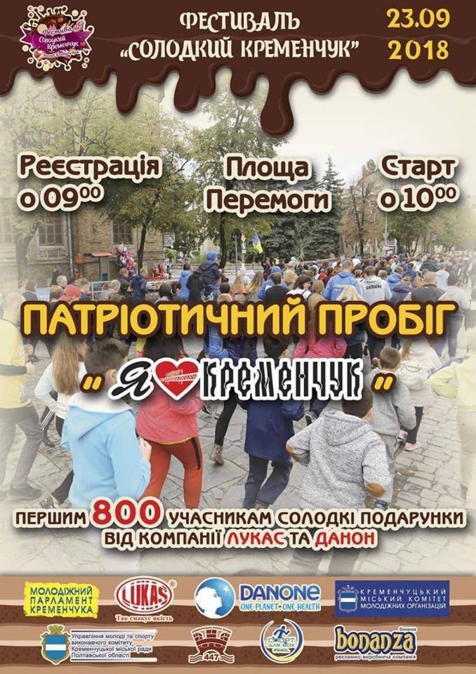 23 вересня о 10.00 з площі Перемоги стартує патріотичний пробіг до Дня міста. З 9.00 до 10.00 всі охочі бігти мають зареєструватися та отримати номер. Реєстрація проходитиме на площі Перемоги неподалік адмінбудівлі міської ради.