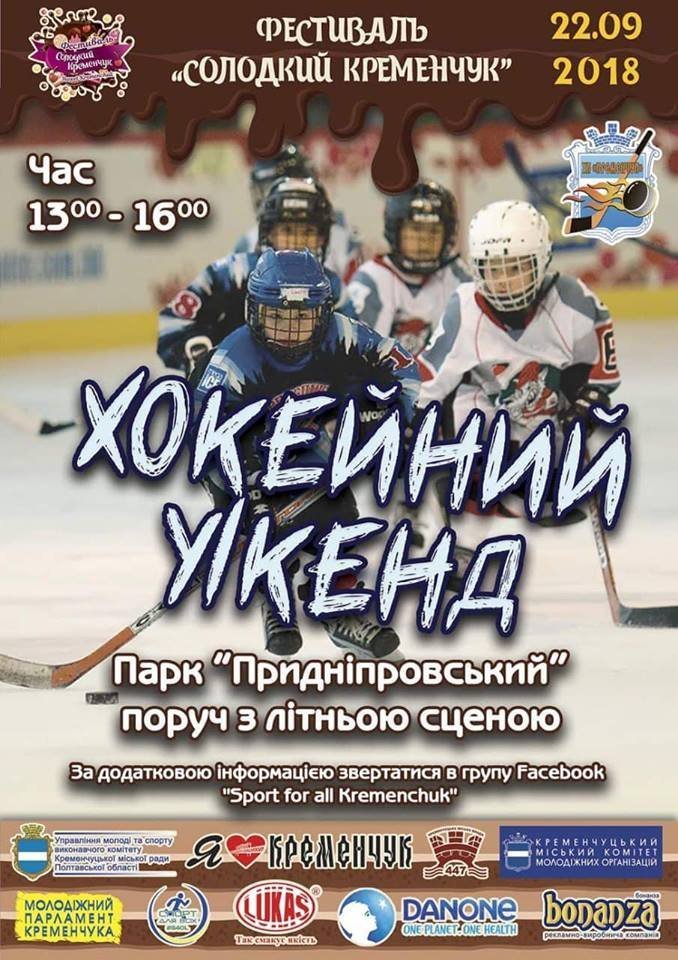 Для любителів швидкості – «Хокейний уікенд» у Придніпровському парку поруч з літньою сценою. 22 вересня кожен охочий зможе відчути себе хокеїстом з 13.00 до 16.00.