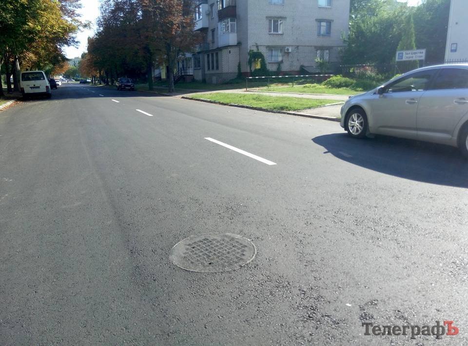 «Телеграф» прошелся по улице Мазепы, где ДРСУ (дорожное ремонтно-строительное управление) уложило свежий асфальт. Асфальт хороший — вопросов нет.