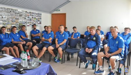 Представник професійної футбольної ліги, фахівець з питань інфраструктури і проведення змагань Геннадій Жданов та представники Всеукраїнської асоціації футболістів-професіоналів Єгор Копилов і Юрій Юрченко провели лекцію для наших гравців та юридичну консультацію з приводу заключення контрактів із професійними футбольними клубами.