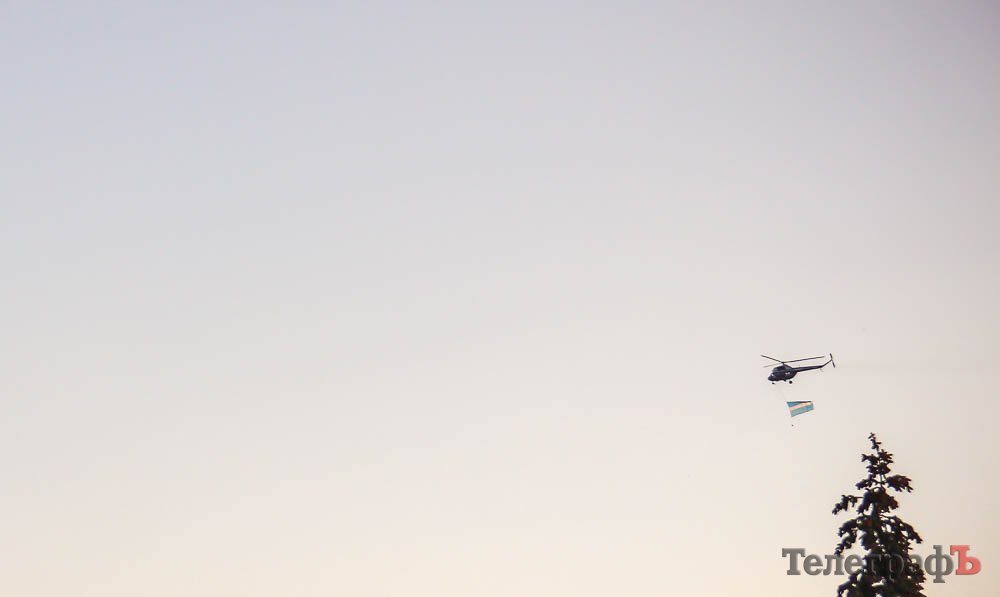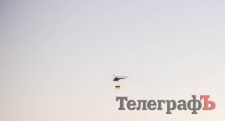 Вчора ввечері над Кременчуком пролетіли два вертольоти з величезними прапорами України і Кременчука. Кременчужани та гості міста, які в цей час відпочивали та ласували смаколиками на фестивалі «Солодкий Кременчук» могли спогядати це дійство.