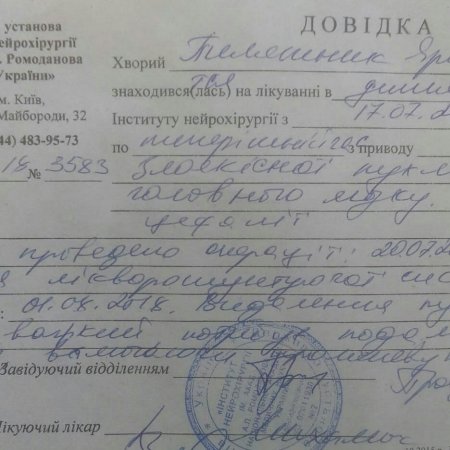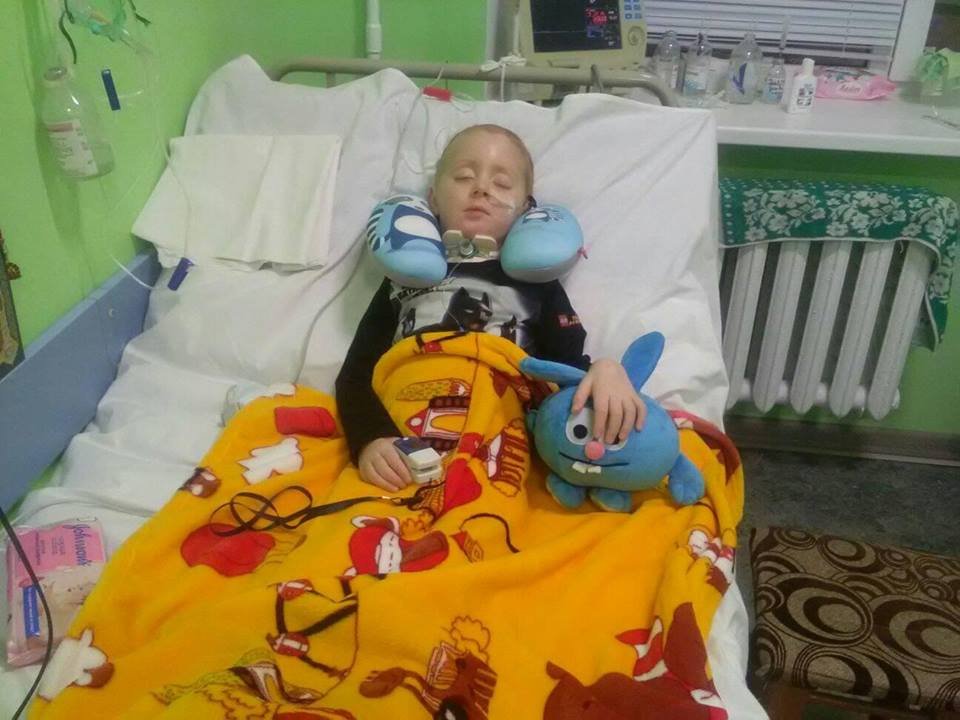 Зараз маленький кременчужанин лежить у дитячому відділенні Інституту нейрохірургії в Києві. Він в комі, а вже пройшов через 4 операції: йому встановили шунтувальну систему, частково видалили пухлину, встановили трахіостоми для дихання і встановили дренаж.