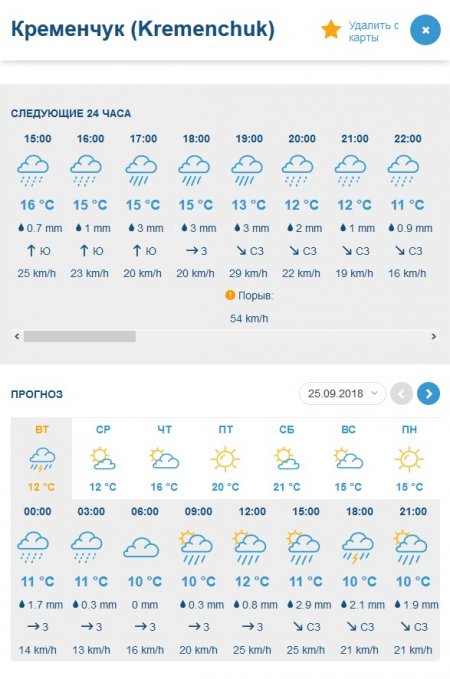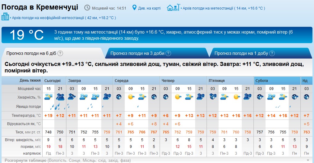 Rp5 обіцяє, що злива литиме сьогодні, 24 вересня, та завтра, 25 вересня. Також накрапатиме у середу, 26 вересня, та суботу, 29 вересня. Увесь тиждень по місту гулятиме вітрюган - пориви до 15-19 м/с. Температура повітря коливатиметься від +6°C до +19°C.