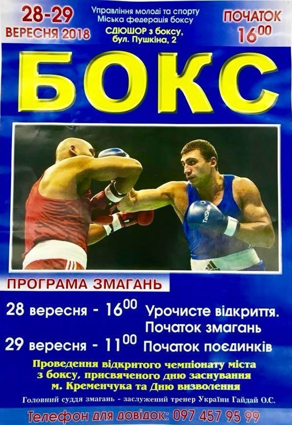 ЩО: Відкритий чемпіонат міста з боксу, присвячений дню заснування Кременчука та Дню визволення