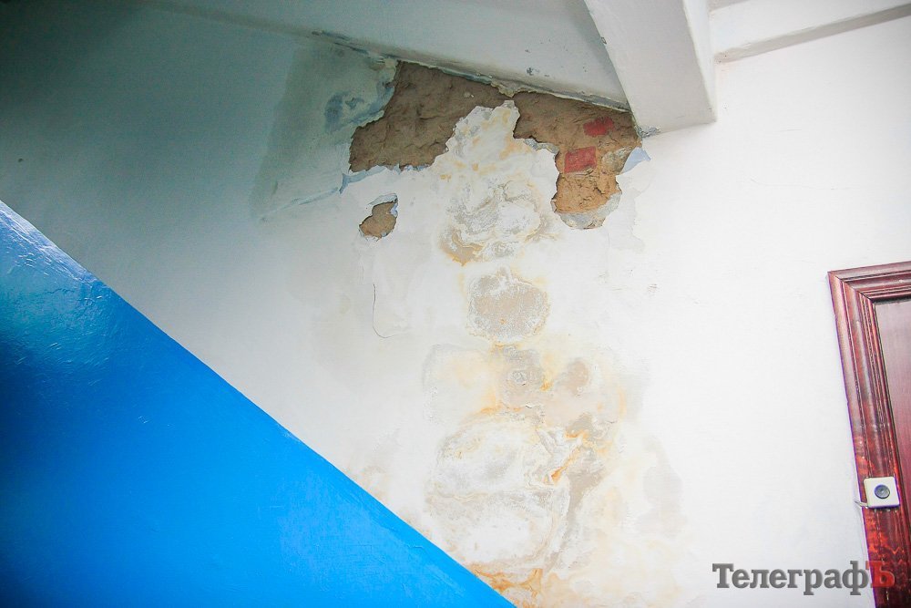 91-летняя кременчужанка, участник войны Лидия Моисеевна рассказала, как уже три месяца борется с управляющей компанией «Місто для людей», которая не выполняет свои обязанности. В ее доме на улице Театральной, 31/20 отсырела и рушится стена в подъезде, с 1 по 4 этаж. Картина разрухи — налицо. Лидия Моисеевна и ее соседи говорят, что причина — труба, которая течет. Обращения в компанию «Місто для людей» не работают.