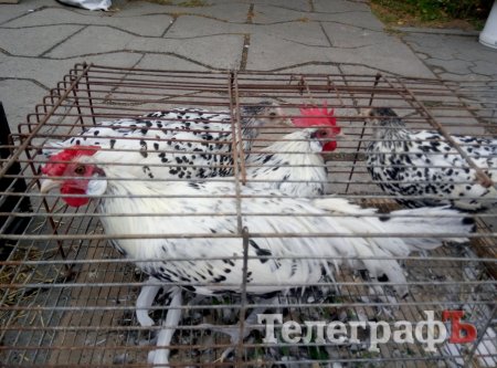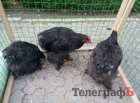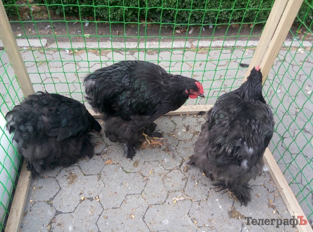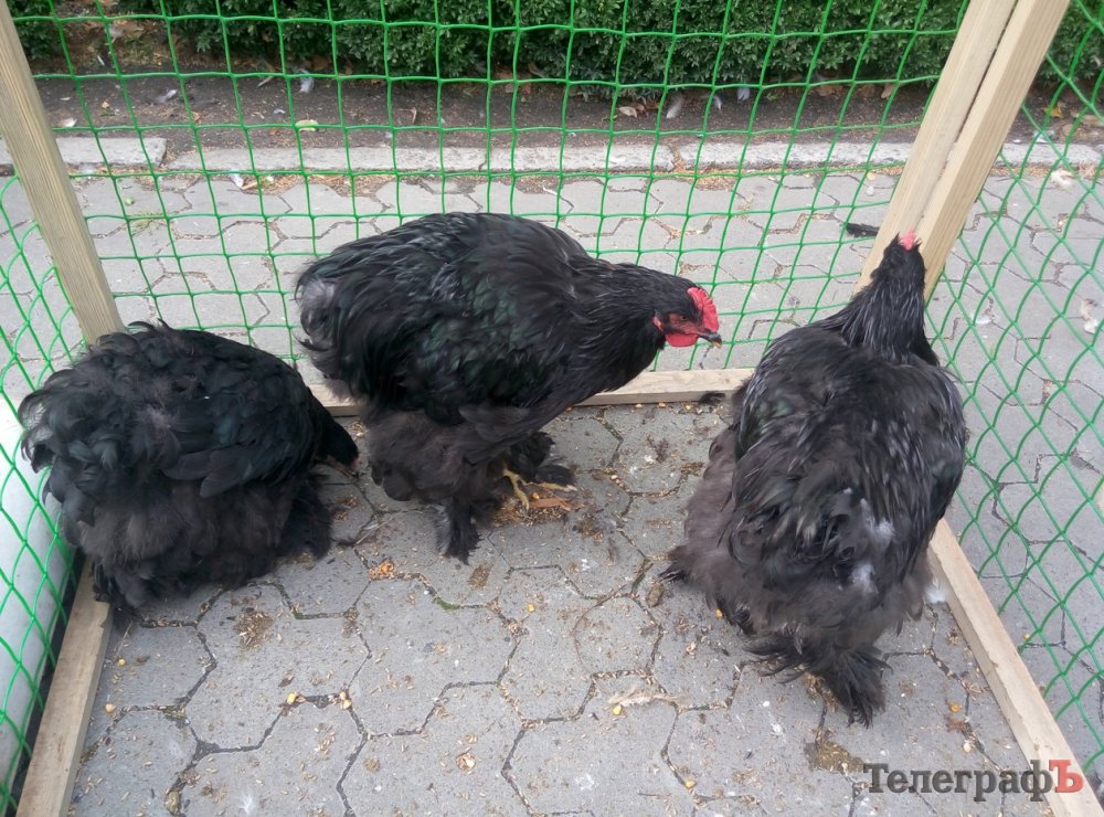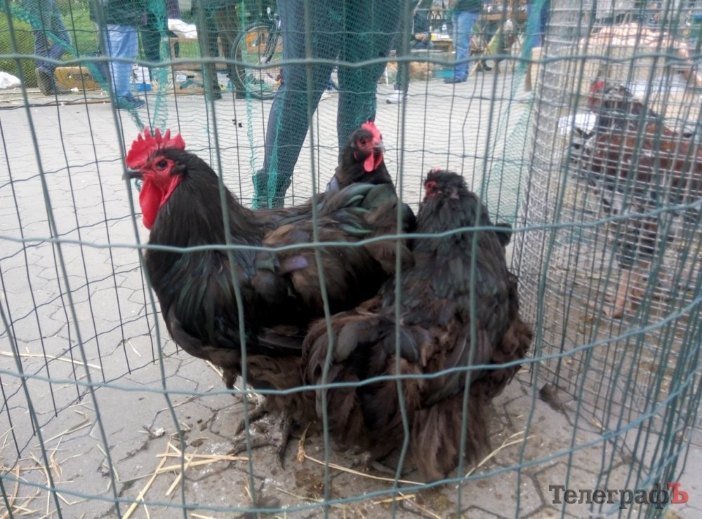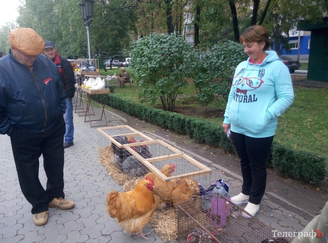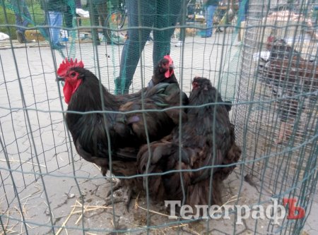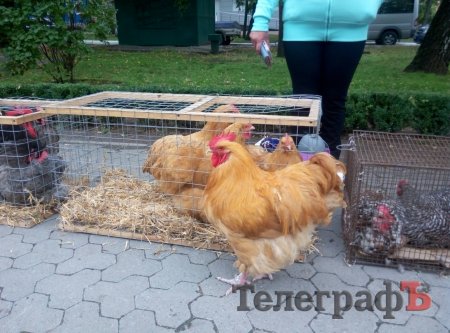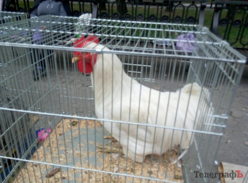 Пользовались популярностью и огромные куры. Например, своих питомцев английской породы Орпингтон привезла Людмила из Пятихаток. Петух гордо и спокойно расхаживал по бульвару возле хозяйки.