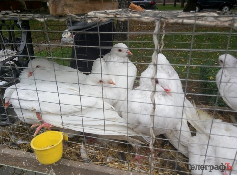 Но главными героями дня были все-таки голуби. Каких только пород здесь не было: летные, почтовые, мясные, причудливые виды декоративных. Правда, местные Крюковские голуби, которые даже несколькими годами тому назад попали на почтовые марки, настолько ценны, что ни один голубятник нее решился их привезти.