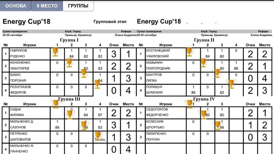 29 та 30 вересня у Кременчуці на тенісному корті «Прем'єр» відбувся міжнародний тенісний турнір «EnergyCup». Змагання в парному розряді відбулися у категорії серед чоловіків Pro/Am (Професіонал/Аматор). Участь у змаганнях взяли 15 пар із Запоріжжя, Дніпра, Києва, Харкова, Полтавської та Донецької області.